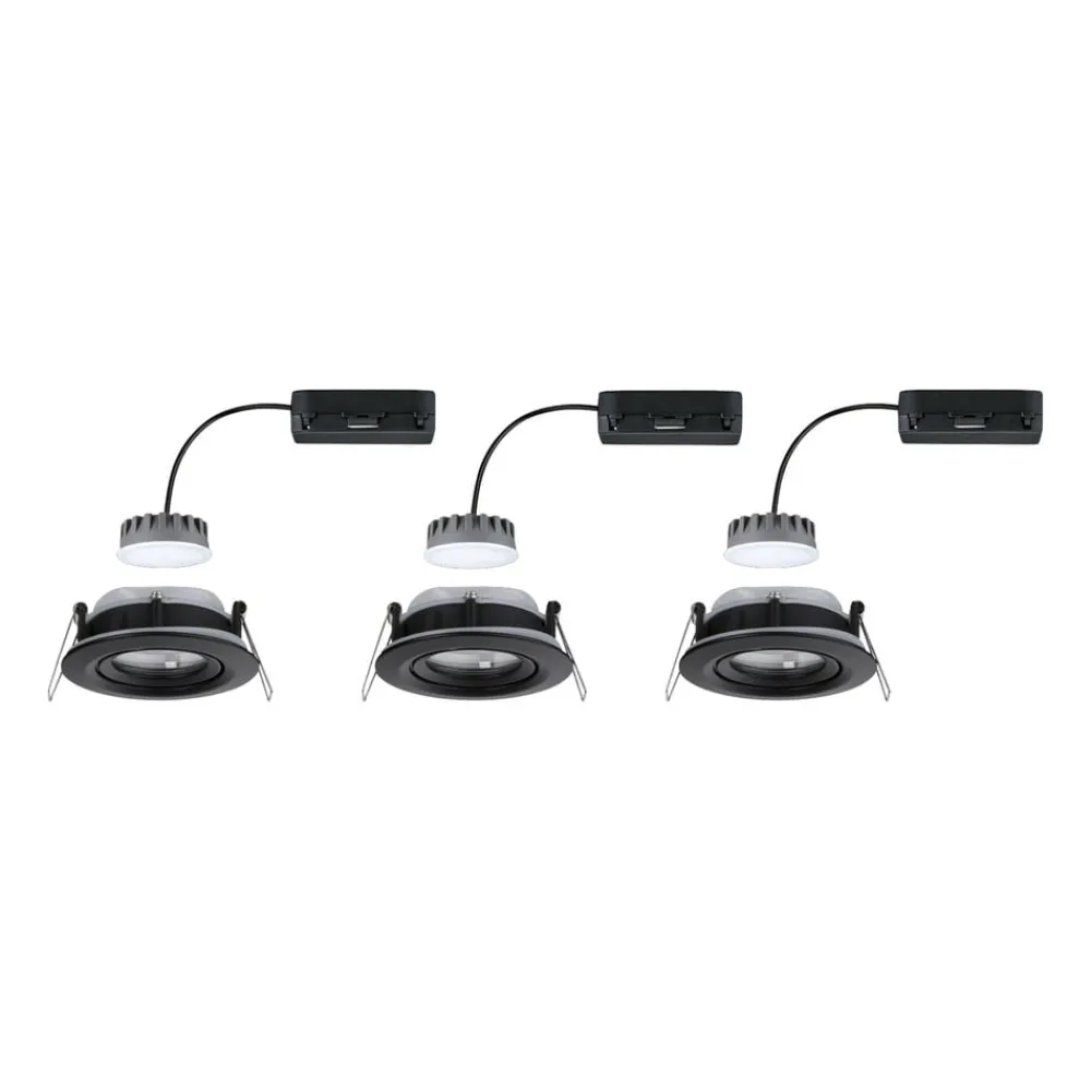 LED-indbygningsarmatur Nova Plus Coin, sort, sæt med 3 stk., drejeligt, IP65