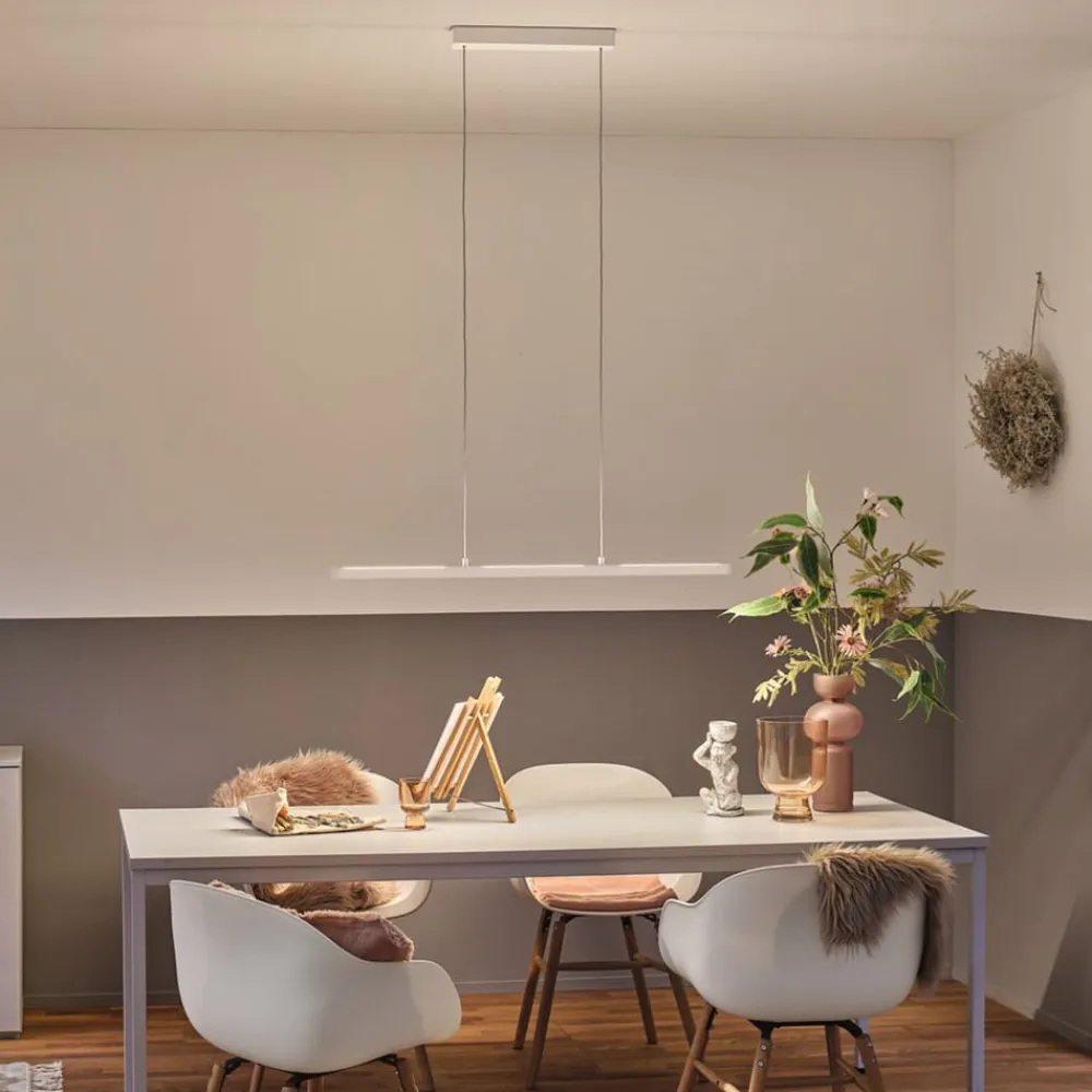 Dæmpbart Lento LED-pendelarmatur med CCT-farveskift, ZigBee 3.0, top- og bundstråle Lento LED-pendelarmatur står for omfattende og smart styrbar interiørbelysning. Den lige profil er udstyret med en nedadrettet og tre opadrettede lysåbninger, så der opnås indirekte og direkte belysning. Ren tænding og slukning er mulig med Lento via den almindelige vægkontakt. Yderligere funktioner kan betjenes via passende Smart Home-tilbehør baseret på ZigBee, selv uden en bro. For eksempel kan lysstyrken dæmpes via den 2-dobbelte vægkontakt fra Paulmann, og lysfarven kan også ændres via Gent-fjernbetjeningen. Begge muligheder kan fås separat via tilbehøret. Hvis du vil have glæde af alle funktionerne, er det nødvendigt at integrere dem i et smart home-system via en ZigBee-bro. Paulmann tilbyder her smik gateway, som muliggør styring med en smartphone/tablet via en gratis app til både Android og iOS. Tekniske egenskaber / kompatibilitet: – ZigBee 3.0-kompatibel – kompatibel med Paulmanns smart home-fjernbetjening og vægkontakt (se tilbehør) – dæmpbar – farvetemperatur kan justeres kontinuerligt (efter integration i et smart home-system) – kompatibel med smart home-systemer baseret på ZigBee såsom Philips Hue eller IKEA Tradfri En separat ZigBee-bro eller en ZigBee-håndsender er påkrævet for at bruge den intelligente lysstyring (dæmpning, CCT, betjening via app osv.) (se tilbehør).