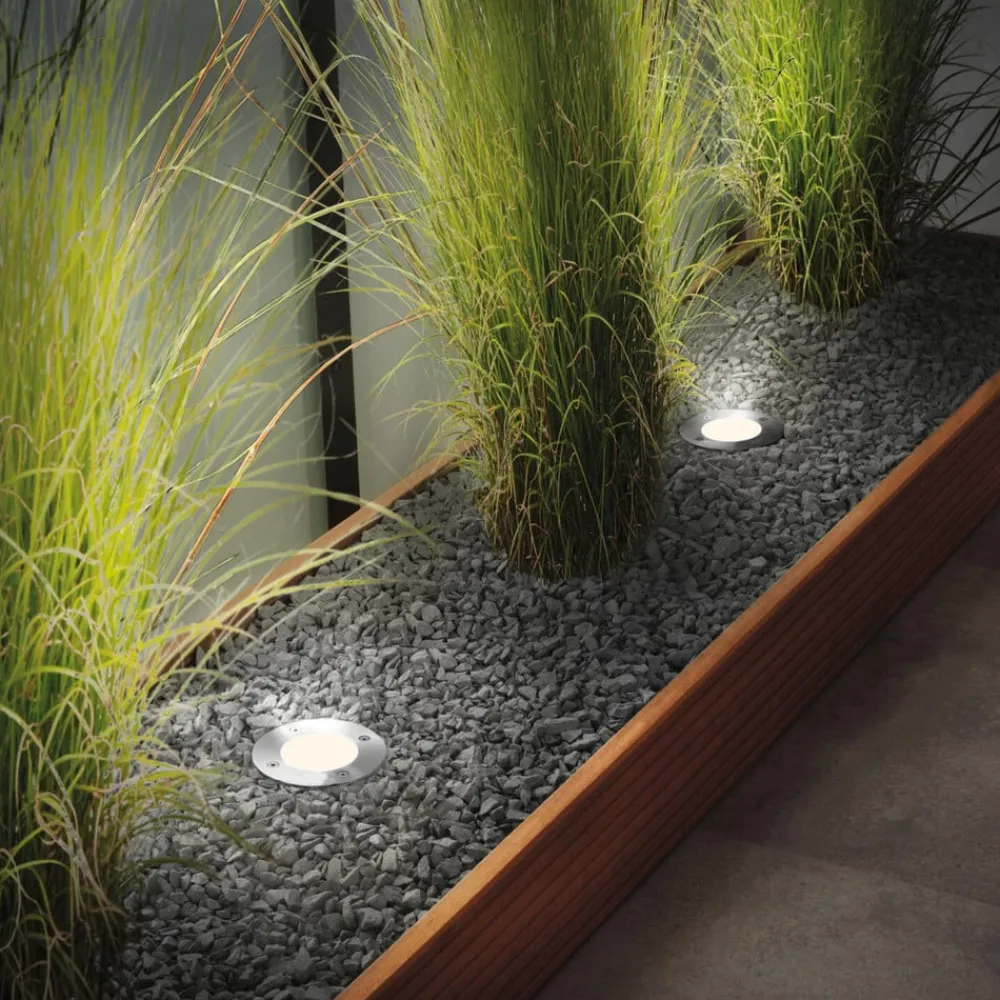 Nedgravningslampe 94228 Plug & Shine – rustfri og stabil Denne visuelt diskrete nedgravningslampe til Plug & Shine-systemet med rund metalramme i rustfrit stål-look er velegnet til accentbelysning langs stier, i haven og ved siden af bygninger. Det varmhvide LED-lys udsendes gennem et klart plastdæksel. 94228 er ideelt udstyret til udendørs krav takket være sin rust-, støv- og vandtætte konstruktion, der kan modstå belastninger på op til 500 kg – Med en driftsspænding på 24 V og vandtætte kabler, tilslutninger og armaturer er Plug & Shine fra Paulmann en alsidig og sikker belysningsløsning til udendørs brug.