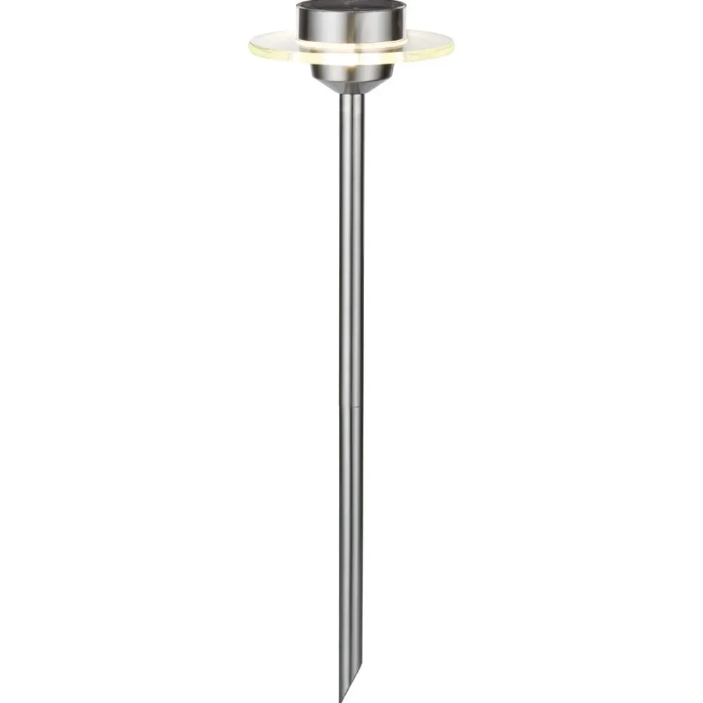 Med solcellelampen Ufo kan have og haveveje oplyses på behagelig vis og iscenesættes dekorativt. Den er yderst energibesparende, idet solcelleteknologien ikke kræver nogen brug af strøm. Om dage oplader batterierne (ca. 6-8 soltimer) og afgiver om aftenen 3-5 timers varm hvidt LED-lys. Med beskyttelsesfaktor IP44 er Ufo vejrfast og sprøjtevandsbeskyttet. Fremstillingen i ædelstål gør lampen garanteret rustfri. Med tænd/sluk kontakt.