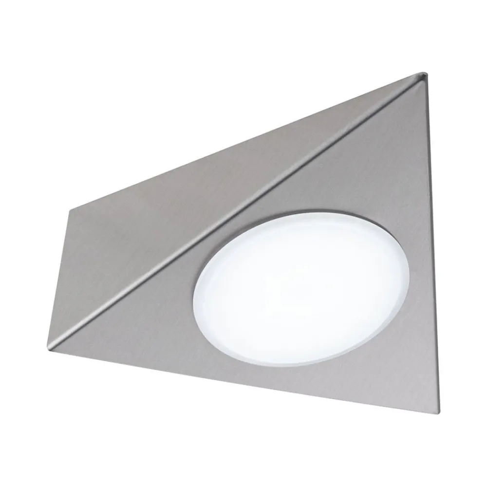 Ved den trekantede og flade fremad designet form for LED sidder diagonalt frem stråle i underskabslampe Trigo, en af mange møbler lamper fra serien Clever Connect. Lysene i denne serie kan kombineres med hinanden og let installeres og udvides ved hjælp af en simpel plug-in stilk. En LED-driver svarende til den samlede wattforbrug for armaturerne kræves til tilslutning, som kan bestilles direkte.