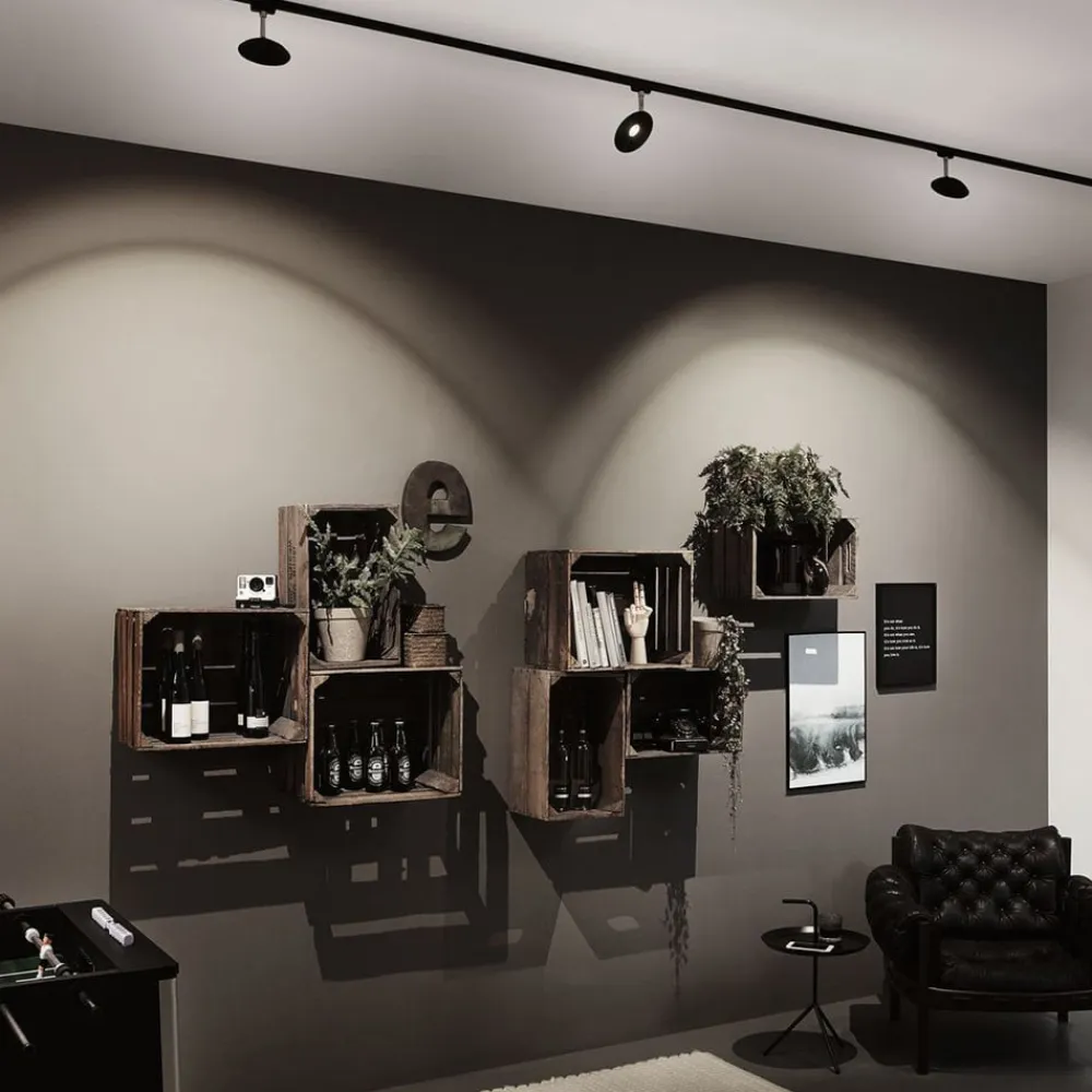 Lindby Skinnesystem>LED-spot 48 V Lumaro, sort, Ø 7,3 cm, aluminium, dæmpbar
