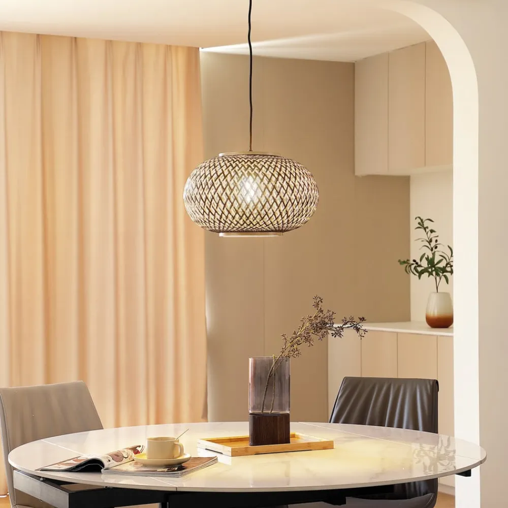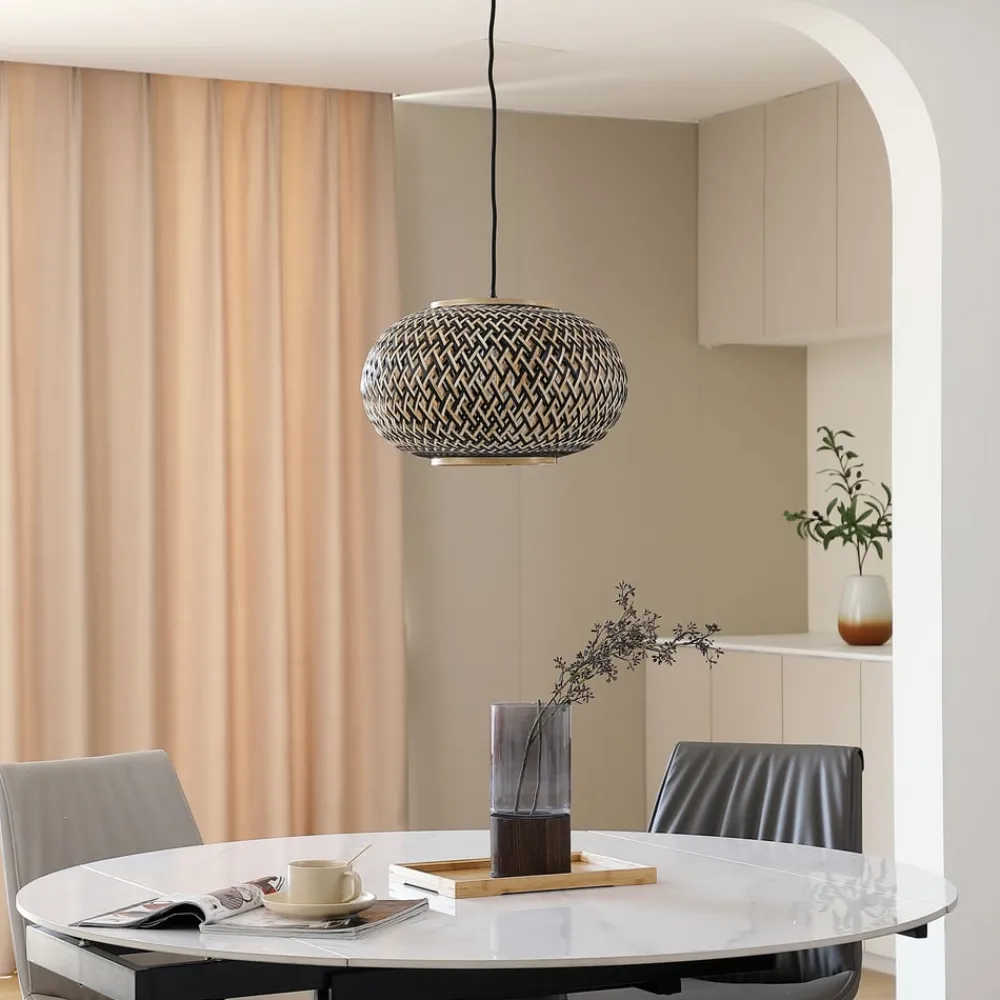 pendel Nerys, 1-lys, sort, bambus, Ø 38 cm^Lindby Sale