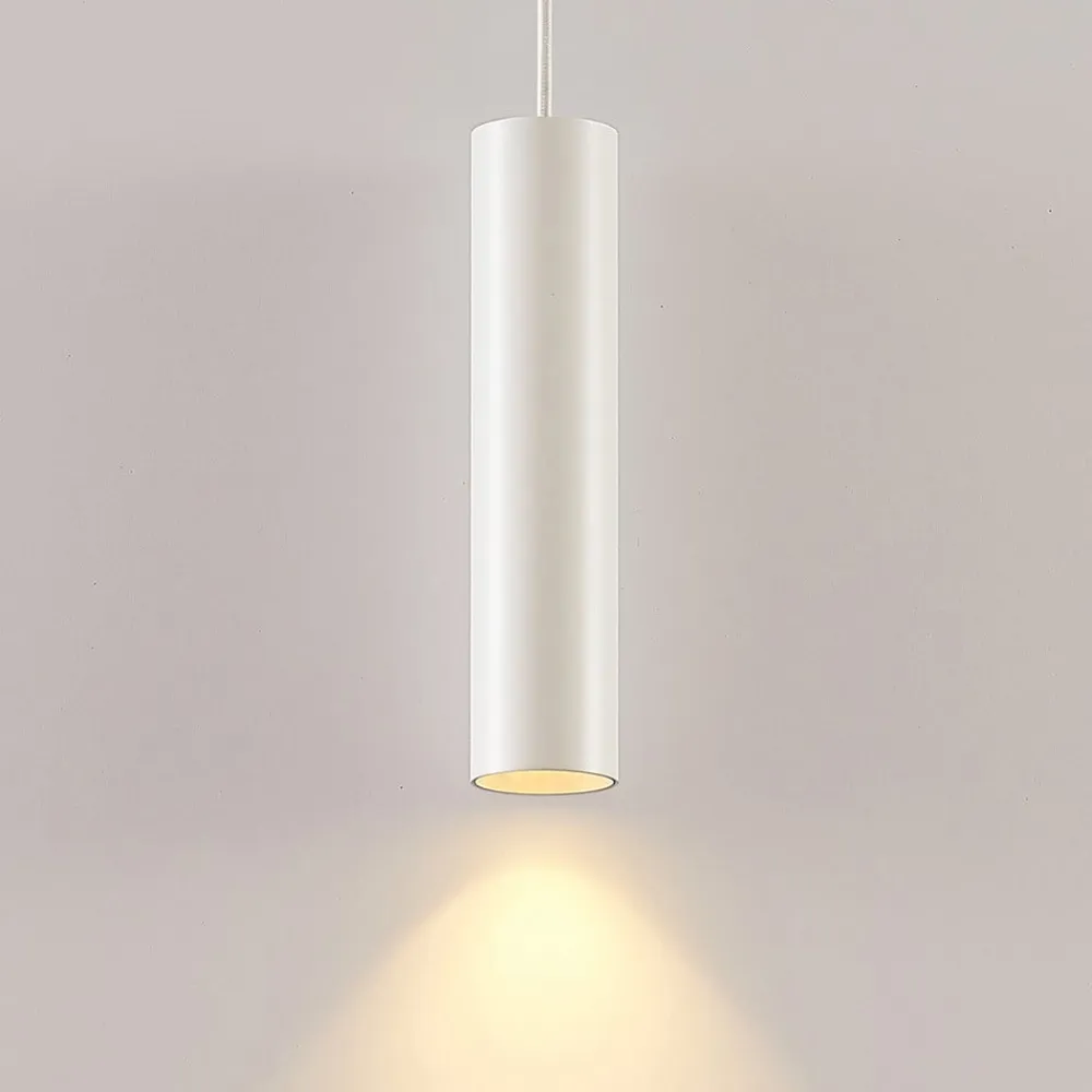 Rund, smal pendellampe i aluminium Ejona i hvid med ekstra reflektorpære i sort Ejona er et moderne udseende belysningselement med et enkelt design, der passer ind i mange rum, både i private omgivelser og til kommerciel brug, for eksempel i et sofistikeret salgslokale, der skal belyses på en attraktiv måde. Lampeskærmen er lavet af aluminium og har en hvid overfladefinish, som er smuk og harmonisk på en diskret måde. Hvis det er nødvendigt, kan der bruges en ekstra reflektorpære, som fås i sort og skaber en flot kontrast, fordi den danner en flot kontrast til den ellers hvide overflade. For et særligt professionelt udseende og effektiv belysning kan flere armaturer fra serien kombineres med hinanden for at belyse et rum eller endda en disk fuldt ud, hvor lyset fokuseres i rummet i en spotform. Strålevinklen kan dog også påvirkes en del af valget af pære, da GU10-pærer fås med smallere eller bredere lysfordeling.
