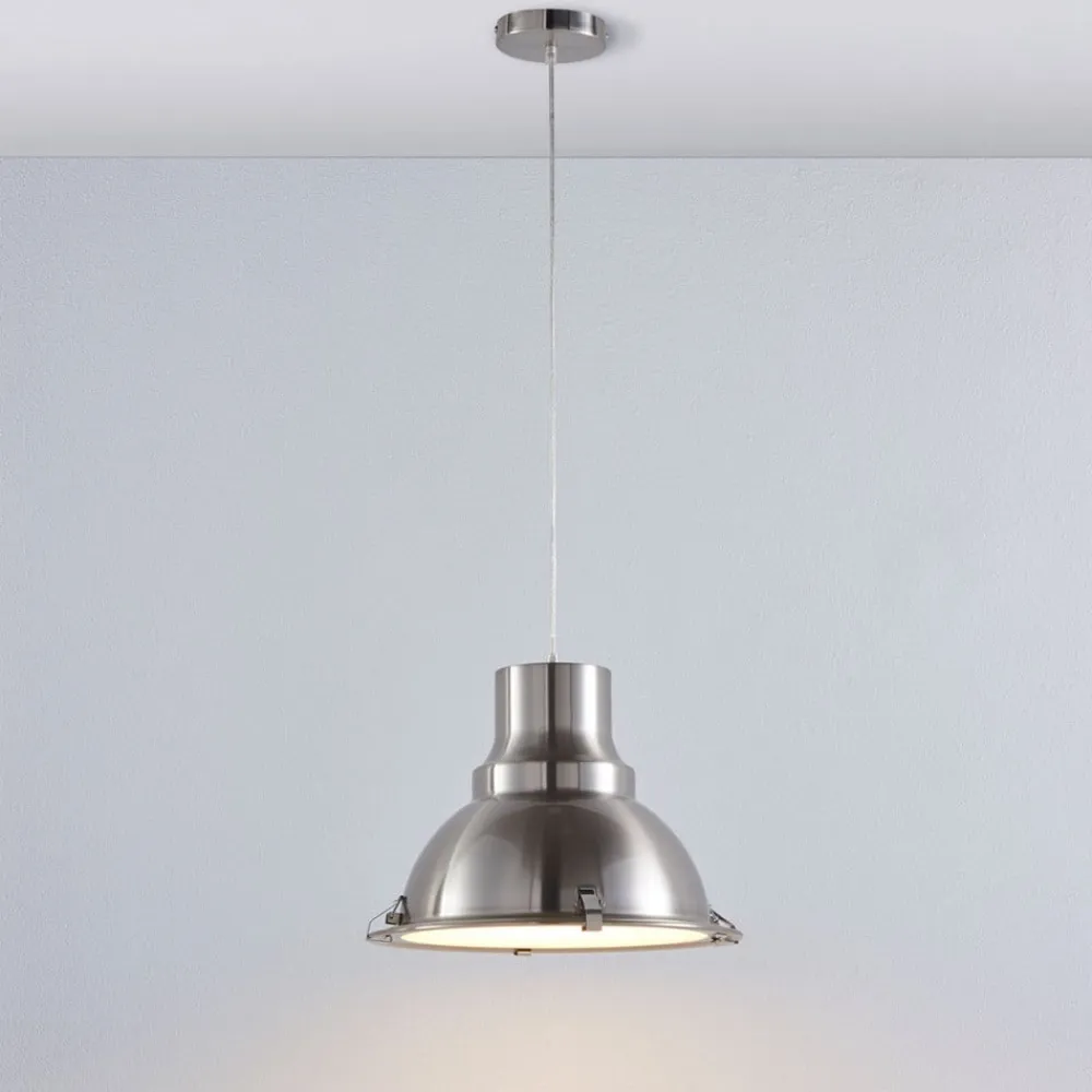 Letty – pendellampe som en ideel tilføjelse til spisebordet Den industrielle stil bliver mere og mere populær – og slet ikke kun hos dem, der lige har indrettet deres loft. Interiøret her minder meget om genstande, der kunne komme fra en fabrik, og dette look har helt sikkert en vis charme. Pendellampen Letty – også i en industriel stil – har en metalskærm med en satin-nikkel-finish på ydersiden. Det skaber en cool elegance på ingen tid. På undersiden af metalskærmen er der et matteret glasdæksel, som får lyset til at skinne mere jævnt. Med denne pendellampe rammer lyset hovedsageligt overfladen under skærmen, og der er selvfølgelig næppe noget bedre egnet til at montere Letty end et bord, som så får en relativt hyggelig belysning.