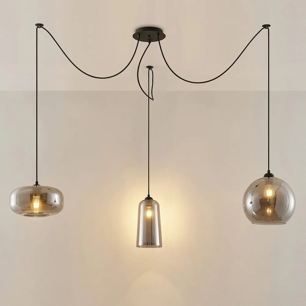 pendellampe Zyli, 3 lyskilder, røggrå, glas^Lucande Best