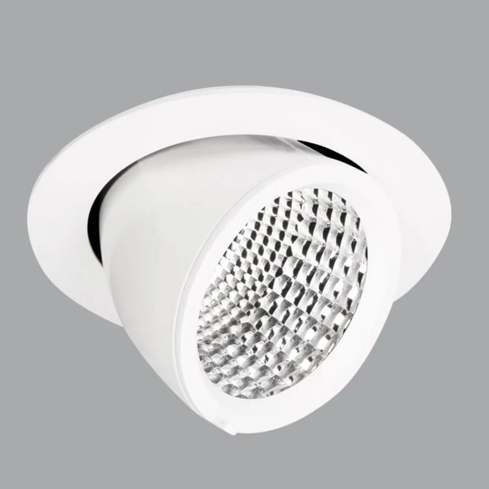 Udstyret med en flood-reflektor: EB433 LED-indbygningslampe EB433 LED-indbygningslampen er en ægte allrounder: Den kan bruges til en lang række formål i private og kommercielle områder (f.eks. til at optimere præsentationen af varer) og er også meget fleksibel, når det gælder justering af lysretningen. EB433 kan svinges indad eller udad med op til 60° (-15° til 45°) og drejes med op til 355°. Elektronisk omformer medfølger. Tekniske data – Sfærisk facetteret reflektor af ultrarent aluminium for maksimal effektivitet – Loftsmontering mulig uden værktøj – Monteringsfjedre medfølger – Inkl. klar hærdet sikkerhedsglasplade
