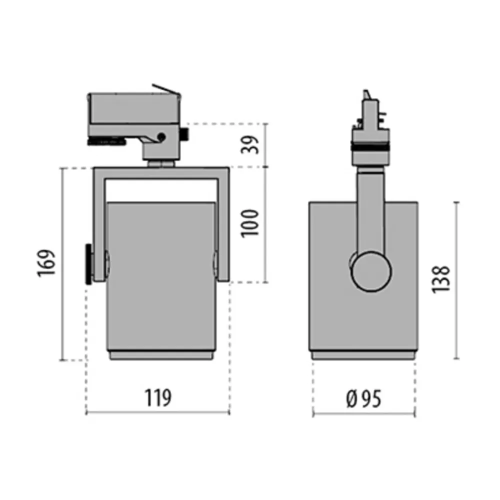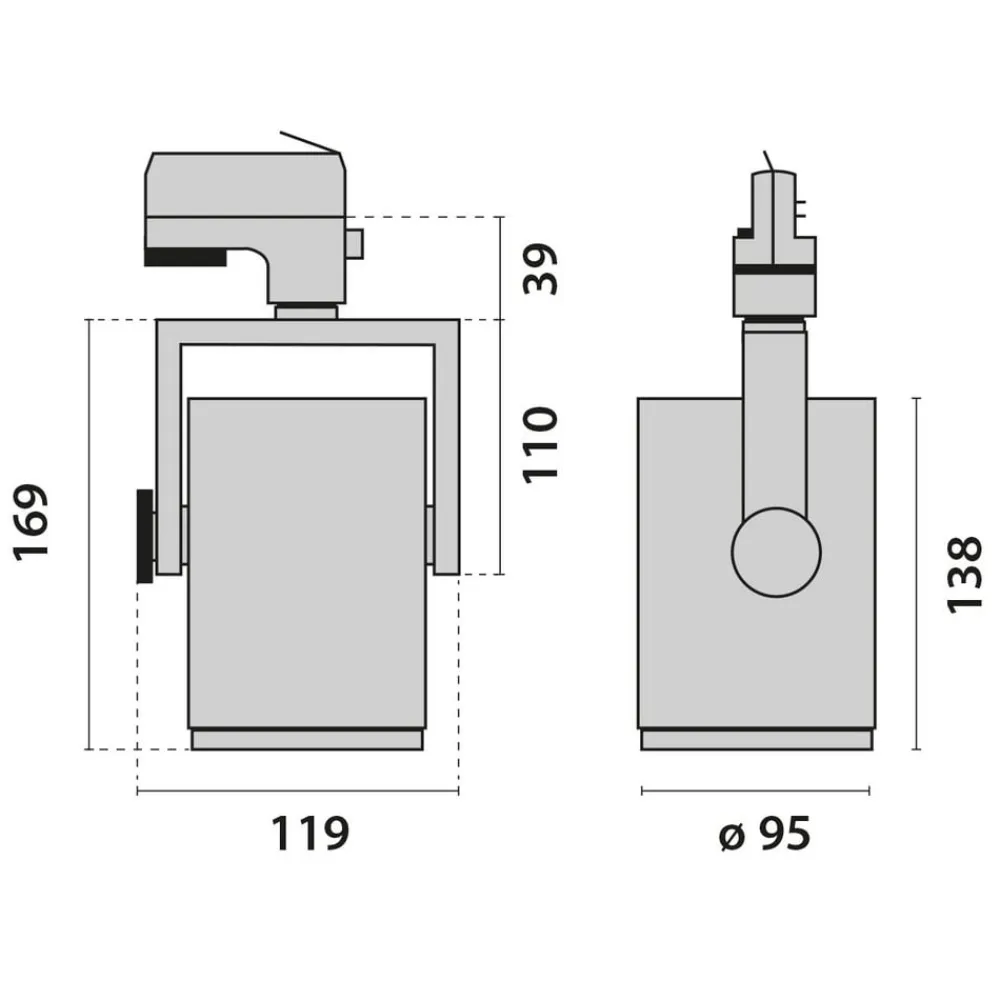 – Spotlighthoved: støbt aluminium og ekstruderet aluminiumsprofil, pulverlakeret