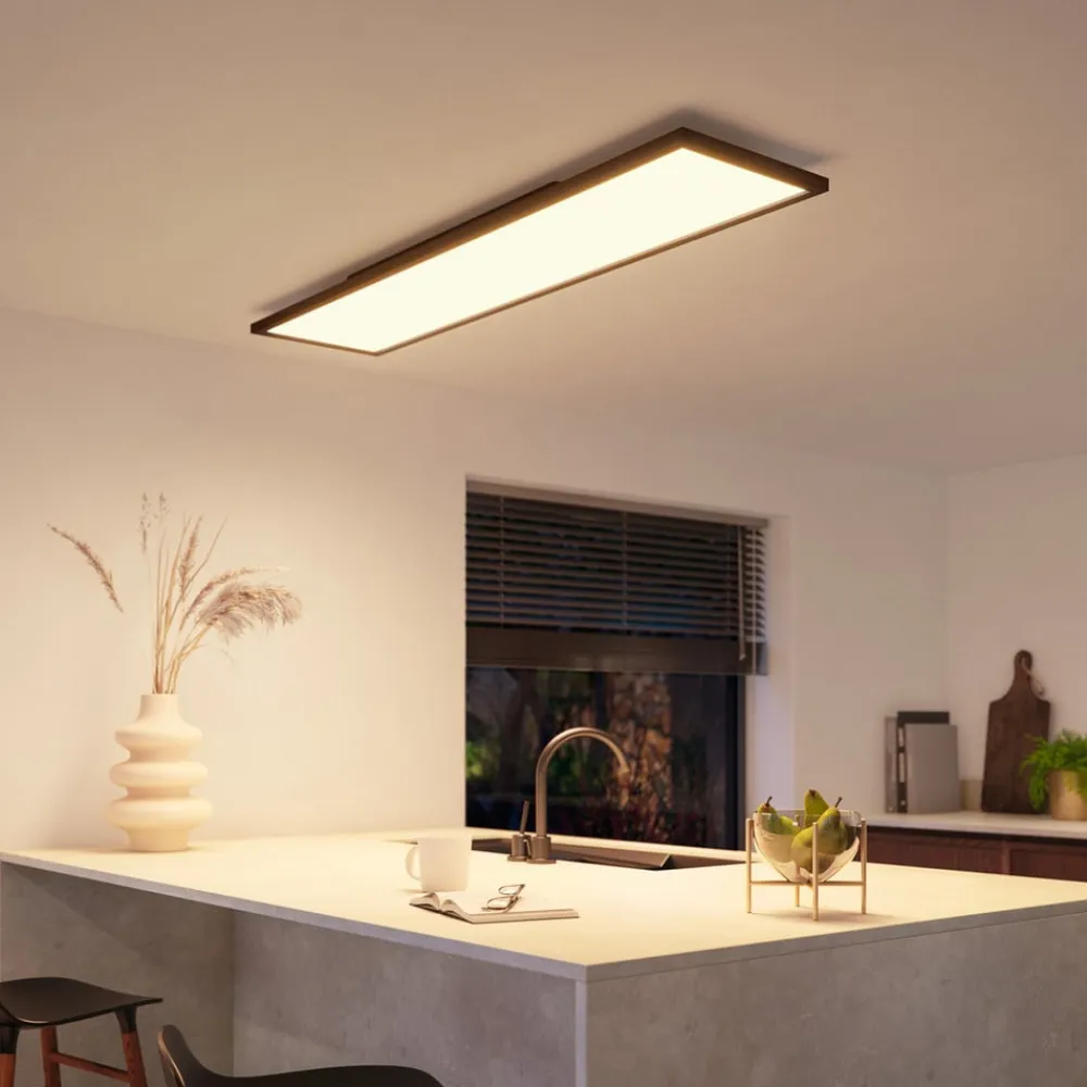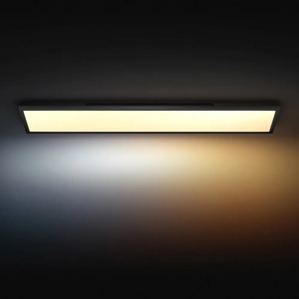 Uanset om du ønsker varmhvidt lys til hyggelig tv-kigning eller kraftigt dagslys til koncentreret arbejde i køkkenet, skaber Philips Hue LED-loftpanelet Aurelle altid den perfekte stemning. Det kan ikke kun indstilles til forskellige lysstyrker eller lystemperaturer, men også til forskellige tilstande – enten via Philips Hue-lysdæmperen (ikke inkluderet) eller via appen på din smartphone eller tablet. Takket være det flade design er panelet ideelt til brug i rum med lav loftshøjde.