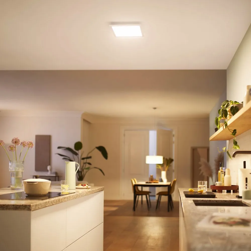 LED-panel Touch i kvadratisk form med Scene-Switch-funktionDet kvadratiske LED-panel Touch fra Philips giver en jævn belysning af et rum og kan skiftes til forskellige lysstyrker via lyskontakten ved hjælp af Scene-Switch-funktionen. Ved at trykke flere gange på lyskontakten kan lysstyrken skiftes i tre niveauer (100 %, 50 % eller 10 %), og der kræves ikke andet tilbehør.- med hukommelsesfunktion