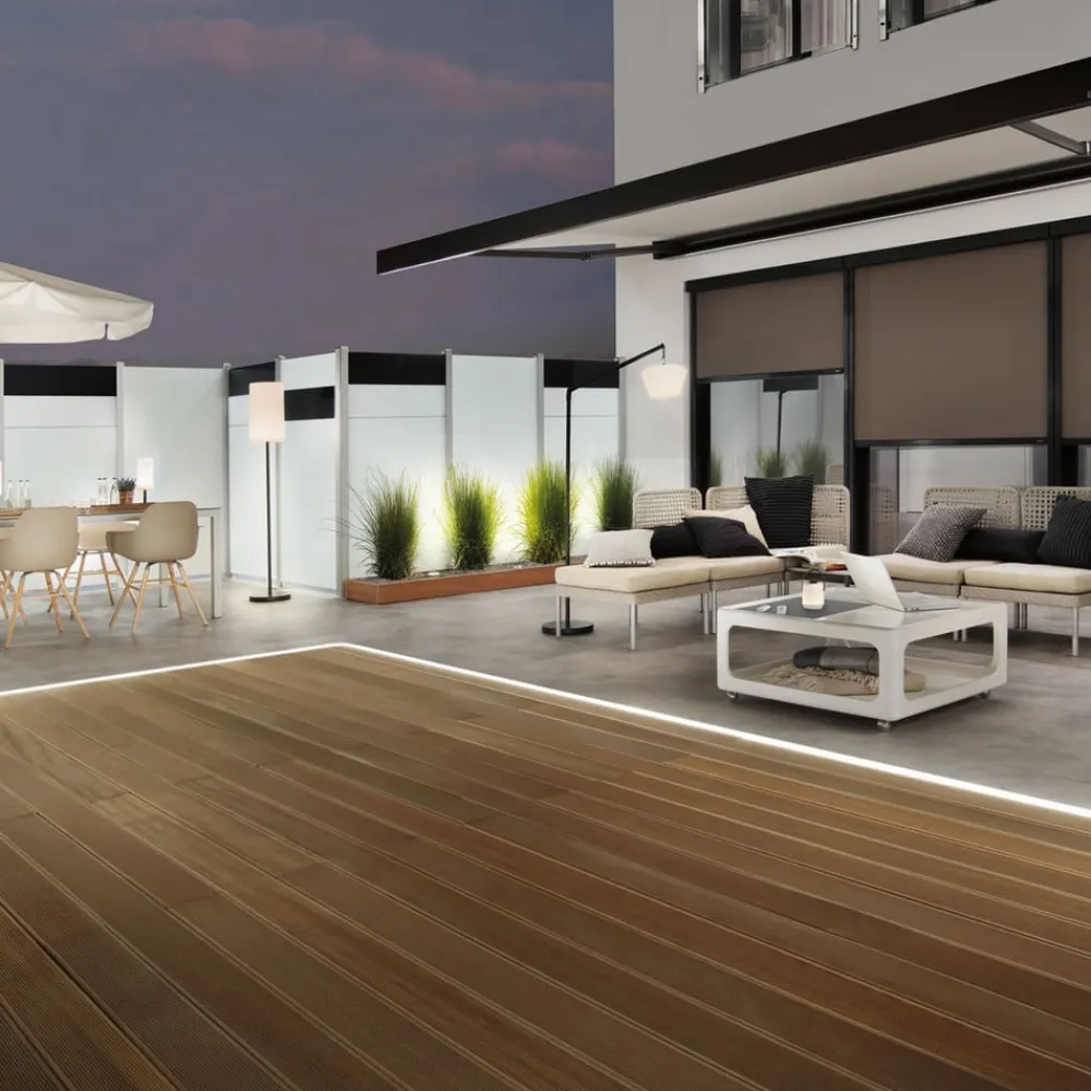 Plug & Shine LED-strip til fleksibel lysdekoration, længde 5 meter Denne LED-strip fra Plug & Shine udendørsbelysningsserien fra Paulmann kan bruges til effektivt at fremhæve en lang række områder på terrassen, på baldakiner, stier eller blomsterbede. LED-strippen lyser homogent i hele sin længde uden synlige lyspunkter og i et behageligt varmhvidt lys. Aluminiumsprofiler og clips fås som tilbehør til montering af LED-strips. Der kræves også en transformator med stik til drift – Med en driftsspænding på 24 V og vandbeskyttede kabler, tilslutninger og armaturer er Plug & Shine fra Paulmann en alsidig og sikker belysningsløsning til udendørsarealer – Transformatorer med stik fås som tilbehør – Kan altid tændes og slukkes med en lyskontakt – Der kræves en controller til fjernbetjening (se tilbehør) – Plug & Shine er velegnet til integration i Smart Friends til styring via Smart Friends-appen (til iOS og Android). Der kræves en ZigBee-controller til dette (se tilbehør). Plug & Shine kan også integreres i andre ZigBee-kompatible smart home-systemer (f.eks. til stemmestyring via Amazon Alexa), hvortil der kræves den respektive gateway – maks. kabellængde strømkilde – armatur: 50 m – modstandsdygtig over for poolvand