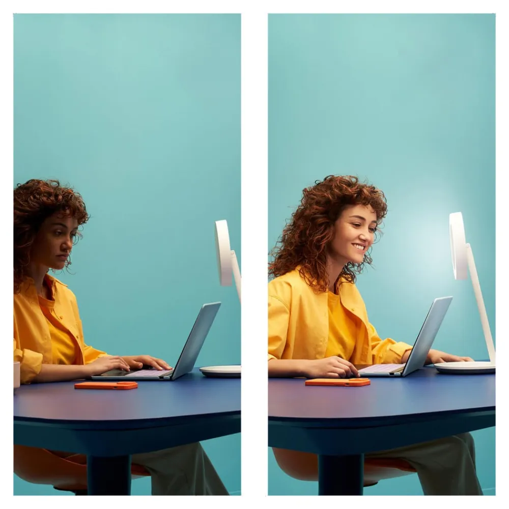 Dæmpbar og med CCT-funktion: Smart LED-bordlampe Portrait med ringlys, WLAN, USB, Ra90 Den smarte LED-bordlampe Portrait med ringlys fra WiZ styres af en gratis app via WLAN-forbindelse. Der er forskellige lystilstande til rådighed til arbejde eller til en hyggelig atmosfære. Hvis armaturet vippes, aktiveres ringlyset automatisk, f.eks. til videokonferencer. Portrait bringer smart lys til alle boligområder, uanset om det er til fokuseret arbejde ved skrivebordet i arbejdsværelset eller på skænke og sideborde til en hyggelig atmosfære i soveværelset eller stuen. Der er forskellige muligheder for at skifte og dæmpe: kontrol er mulig ved at trykke på de integrerede knapper, via app eller stemmestyring (Amazon Alexa, Apple Siri eller Google Assistant). Det dæmpbare hovedlys giver også 65.000 forskellige nuancer af hvid til enhver situation takket være CCT-farveskiftfunktionen. Der er også installeret en sensor til automatisk tænding, når man nærmer sig, og Portrait er også kompatibel med Matter-standarden. Lyset derhjemme kan også styres på farten via appen, og der kan også indstilles tidsplaner. Denne moderne kombination af bordlampe og ringlys får strøm via USB-C og kan derfor også nemt tilsluttes en laptop eller pc. Den smarte LED-bordlampe Portrait med ringlys er en fremragende belysning til selfies, til streaming eller til videokonferencer. Samtidig kan den også bruges som en moderne og smart styrbar bordlampe. Tekniske egenskaber / kompatibilitet – kan integreres via WLAN; bridge eller gateway er ikke nødvendig – kan styres med en smartphone eller tablet via WiZ-appen til iOS og Android på stedet eller på farten (internetforbindelse påkrævet) – stemmestyring mulig (Google Home, Amazon Alexa eller Apple Siri) – kan også styres manuelt via knapper på basen – kan også styres med WiZ-fjernbetjeningen (se tilbehør) – CCT-funktion med 65.000 hvide toner (2.700 – 6.500 K) – dæmpbar – meget god farvegengivelse (CRI>90) – betjenes via USB-C – vipbar – kan bruges som ringlys eller moderne bordlys – Matter-certificeret – sensor til automatisk tænding, når man nærmer sig – god koblingsmodstand: 50.000 koblingscyklusser