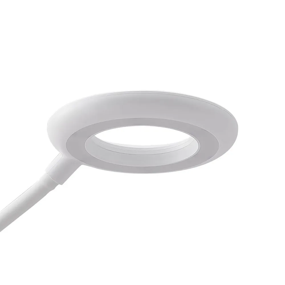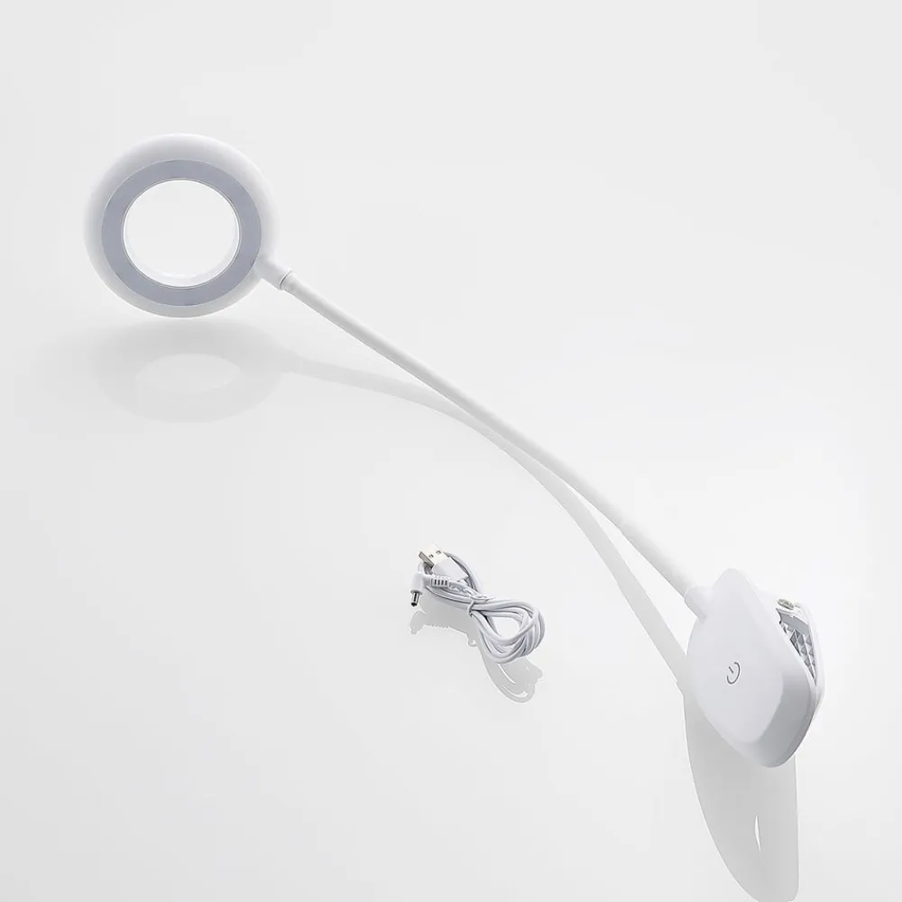 Enkel Harumi LED-klemmelampe med fleksibel lampearm, USB Harumi LED-klemmelampen kan bruges næsten overalt og kan derfor også bruges fleksibelt i hjemmet. Det ringformede lampehoved og den slanke, fleksible lampearm dominerer det moderne design, som harmonerer meget godt med moderne indretning. Denne lampe kan oplades med et USB-kabel og er også trinløst dæmpbar, så den opfylder alle krav.