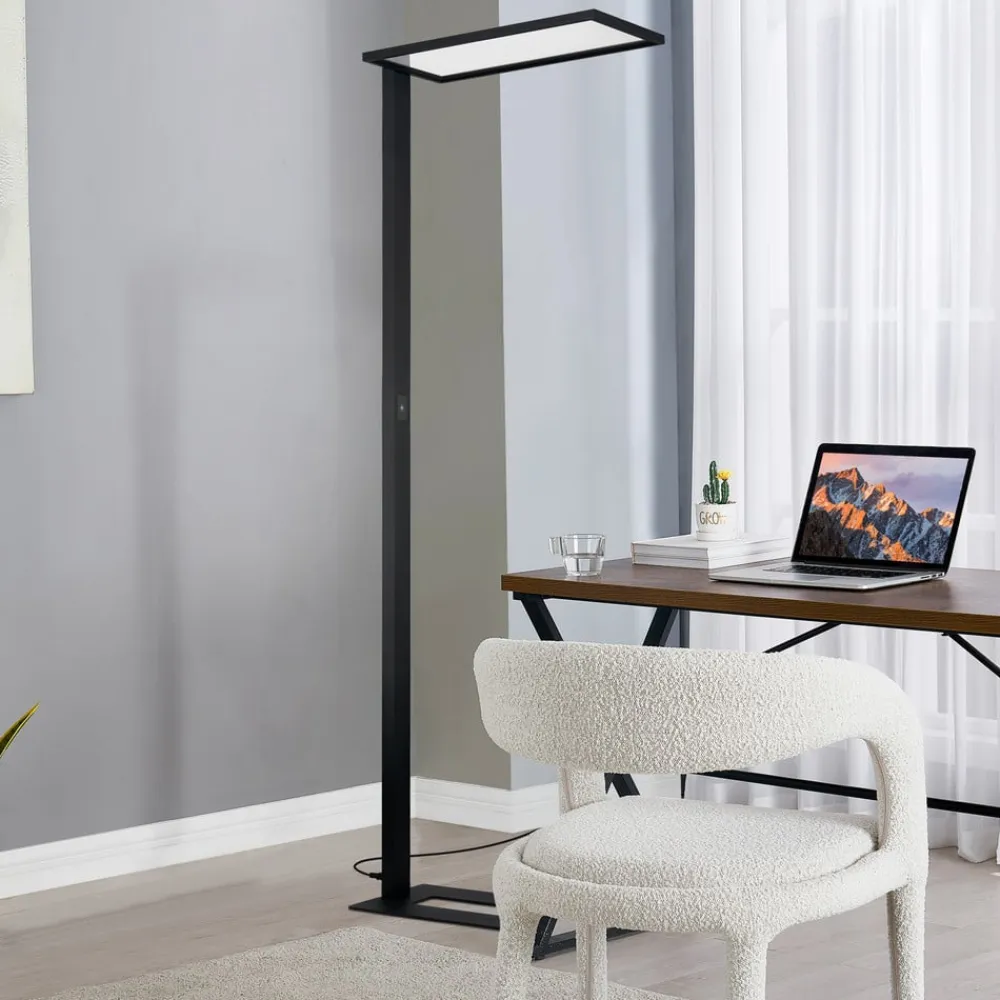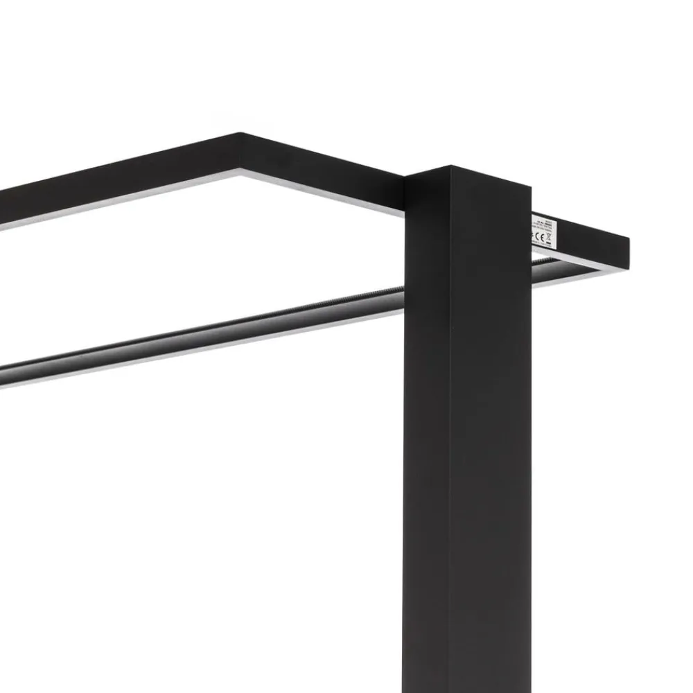Sort LED-gulvlampe til kontor Taronis med integreret berøringsdæmper og U-formet fod Taronis er en gulvlampe til kontor med en sort overflade, der lover god brug i arbejdsområder og giver et universalhvidt lys, der er ideelt til koncentreret arbejde. Lysstyrken kan reguleres ved hjælp af touchdæmperen, og den U-formede fod gør det muligt at placere lyskilden omkring alle bordben. Da lyset udsendes opad og nedad, skabes der et naturligt allround-lys, som er behageligt at arbejde i – direkte/indirekte lysudsendelse – U-formet fod – touchdæmper – universalhvidt lys