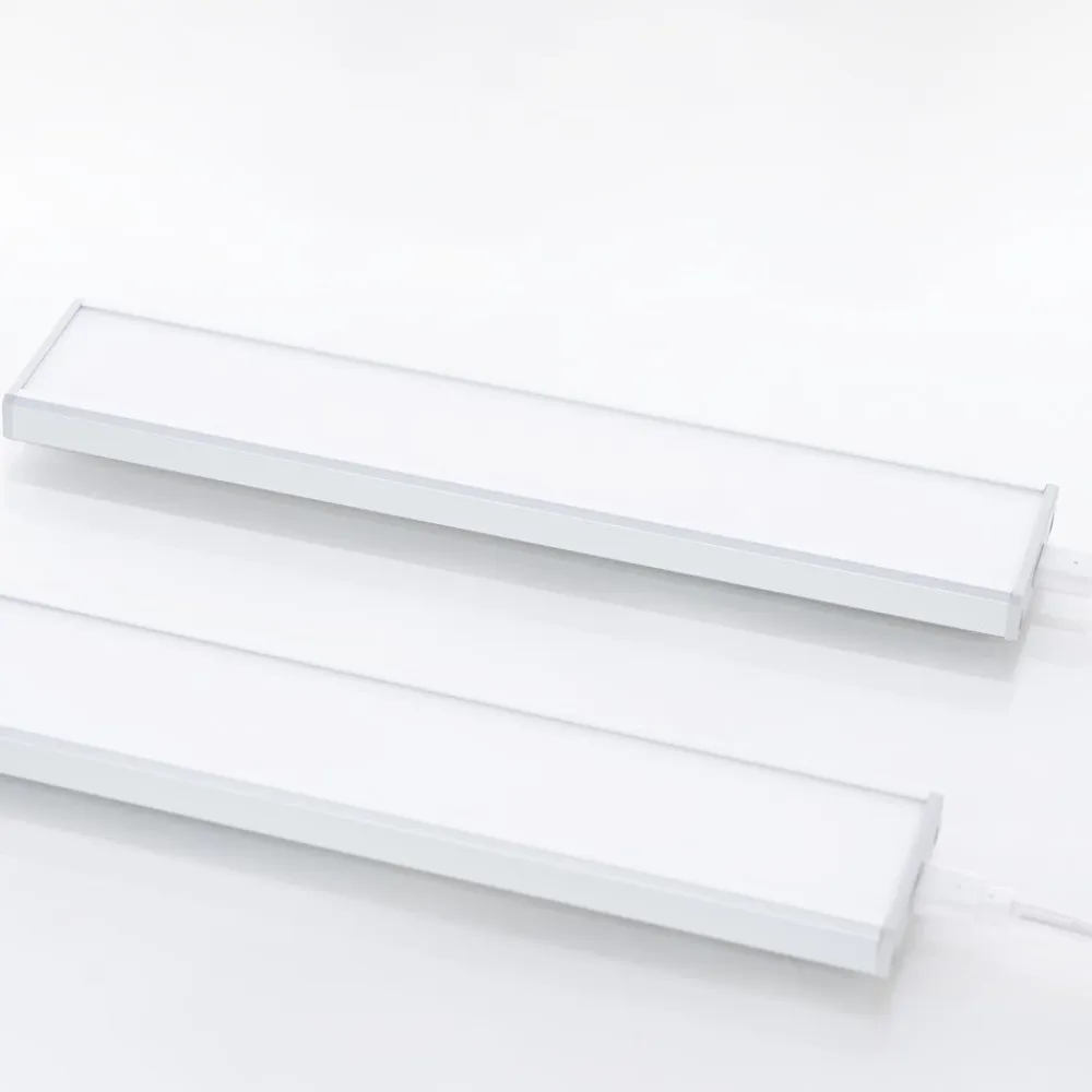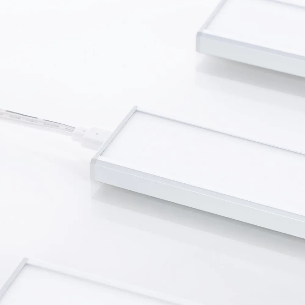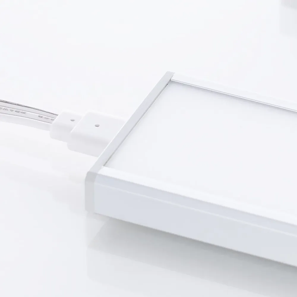 Praktisk LED-underskabsbelysning Ashtonis i et sæt på 3 med sensor og afbryder Her tilbyder vi et sæt LED-underskabsbelysning, der giver god service i f.eks. køkkenet og belyser arbejdsfladen tilstrækkeligt. De tre lamper er forbundet med hinanden og har en sensor, der ikke kun gør det muligt at tænde og slukke for lamperne, men også at dæmpe dem i 5 trin (5% – 10% – 30% – 60% – 100%), så lysstyrken kan justeres efter behov. Designet er lige så moderne, som det er tidløst.