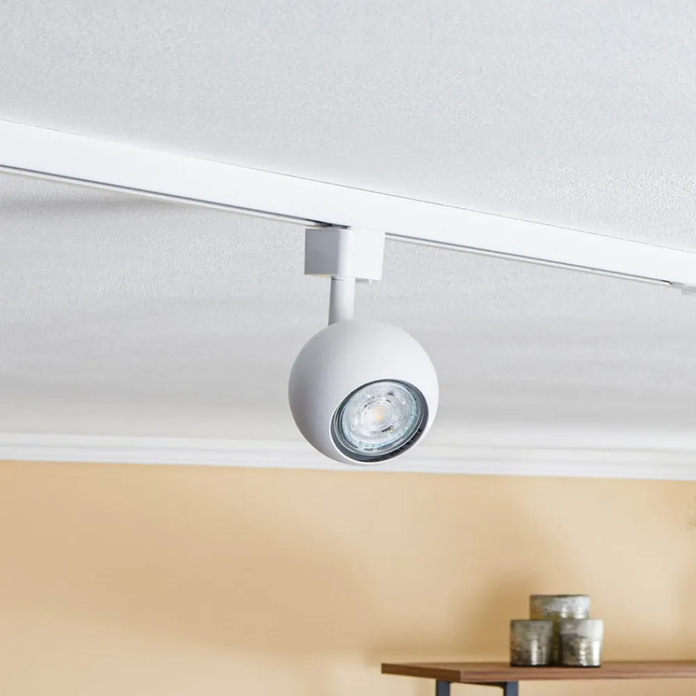Hvid Felipo skinnespot i kugleform med adapter til 1-faset skinne Felipo monteres på en 1-faset skinne og er et godt supplement til de eksisterende komplette systemer i denne serie. Spotlightet ligner en kugle og har et tidløst overfladedesign i hvid, der passer til mange miljøer. Lampehovedet kan justeres efter behov, da det kan drejes og svinges. Den rigtige reflektorpære skal tilpasses kravene på stedet. Der findes f.eks. versioner med en køligere eller varmere lysfarve eller dem med en bred strålevinkel, som er mere velegnet til omgivelsesbelysning, mens en smal strålevinkel giver punktformet og målrettet lys.