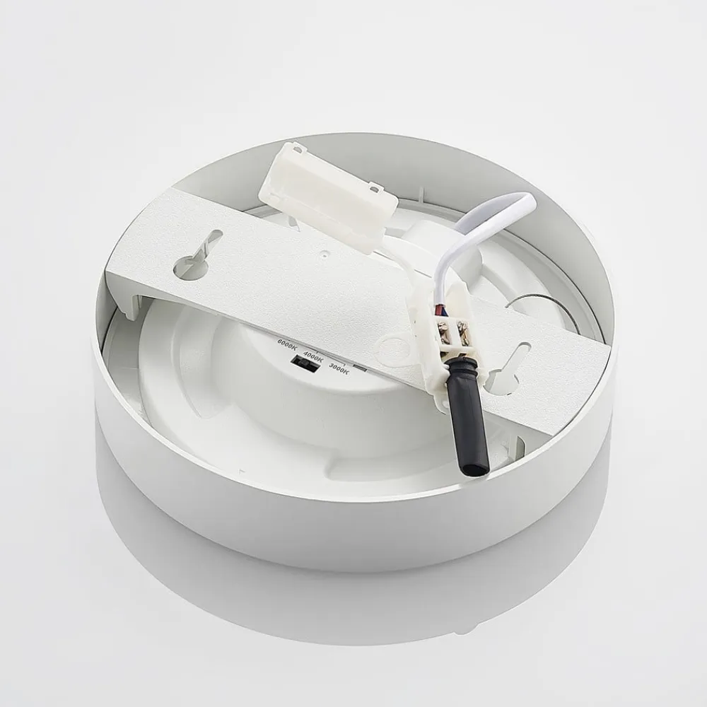 Edwina rund LED-loftlampe med forindstillelig lysfarve, IP44 Denne loftlampe med sine fastmonterede LED’er er en enkel lyskilde til utallige lejligheder, som kan bruges både privat og kommercielt. Den runde form og det hvide overfladedesign er særligt tidløst, og Edwina er også teknisk velegnet til mange steder og anvendelser, da lysfarven kan forudindstilles før installation ved hjælp af en integreret DIP-kontakt på huset, og kapslingsgraden gør det også muligt at bruge den i vådrum, da LED-loftlampen er tilstrækkeligt forseglet til at forhindre, at der kommer vandsprøjt ind. Med den brede strålevinkel kan større områder også belyses godt, og lysstyrken kan også justeres via en ekstern dæmper, hvis det er nødvendigt – IP44, til badeværelser og fugtige rum – Lysfarve kan forudindstilles via DIP-kontakt