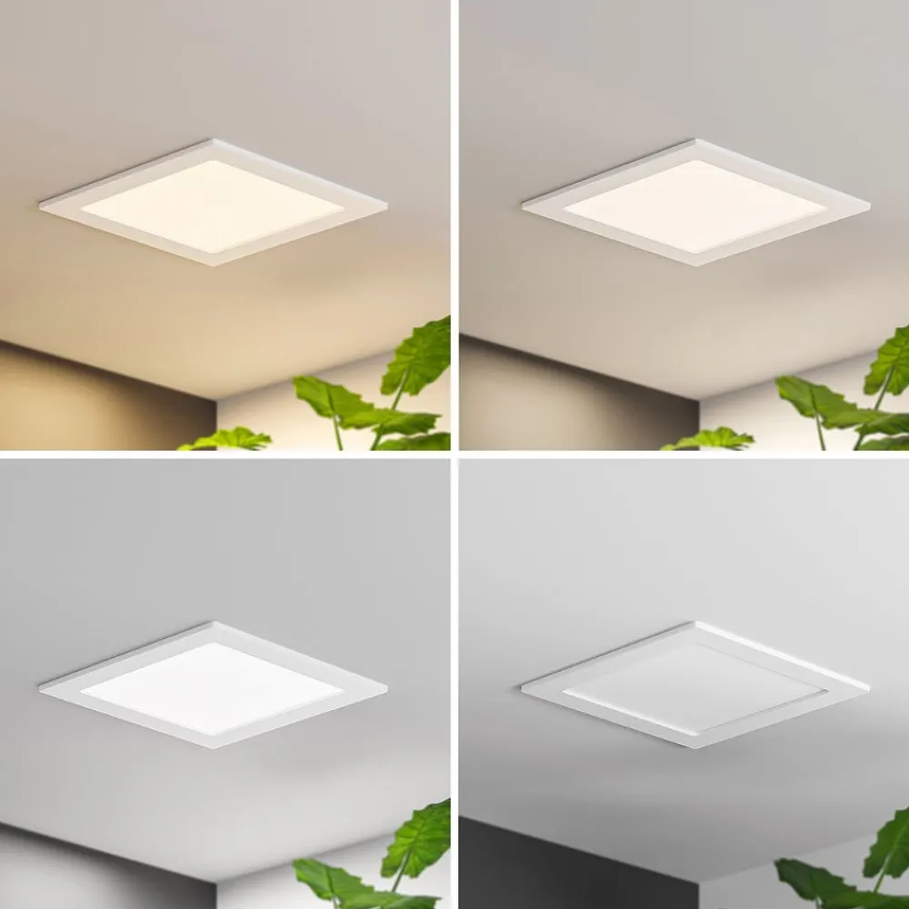 Hvid, lysstærk Helina-indbygningslampe med IP44 og DIP-kontakt til indstilling af lysfarve Helina imponerer på mange måder og er en alsidig lyskilde til både private hjem og erhvervsmiljøer. Med sin højere beskyttelsesgrad er den ideel til brug i fugtige rum som f.eks. badeværelser, og lysfarven kan indstilles på huset før installation ved hjælp af en DIP-kontakt for at få en optimal lysoplevelse. Du har også mulighed for at justere lysstyrken, hvis der findes en ekstern lysdæmper. Udseendet er enkelt og tidløst med den firkantede grundform og den hvide ramme. Den er fremstillet af robust polykarbonat og udstyret med aluminiumsclips på bagsiden – Dæmpbar – Lysfarve kan forudindstilles via DIP-kontakt – IP44, velegnet til brug i fugtige rum – Robust polykarbonathus og aluminiumsclips for nem installation