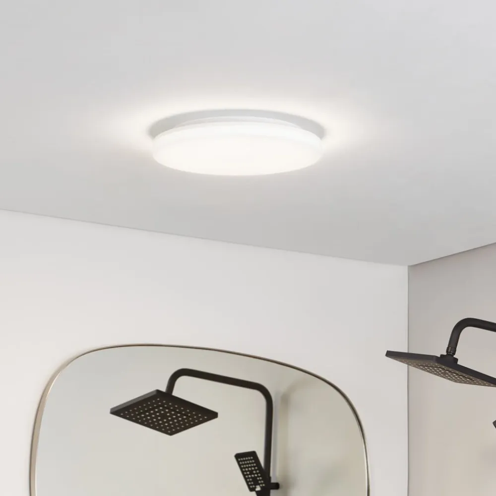 Artin rund LED-loftlampe med CCT-funktion, velegnet til vådrum Artin er en moderne LED-loftlampe i et klassisk rundt design. Den er lavet af plast og kan opfylde sit formål på lang sigt takket være dette holdbare materiale. Da Artin har en kapslingsgrad på IP65, kan armaturet bruges i fugtige rum uden problemer. Det neutrale design i hvid kan nemt integreres i forskellige boligområder og kommercielle rum. Armaturet har to DIP-kontakter. De kan bruges til at justere lysfarven i flere trin: 3.000 K, 4.000 K og 5.700 K, og wattstyrken kan ændres fra 24 W til 17 W. Artin opfylder dermed ethvert ønske og tilbyder stilfuld belysning til privat og kommerciel brug. Tekniske data: – CCT-funktion via DIP-switch: 3.000 K / 4.000 K / 5.700 K – Dobbelt wattfunktion via DIP-switch: 24 W / 17 W – Kapslingsgrad IP65 – Udstrålingsvinkel 120° – Slagfasthed IK08
