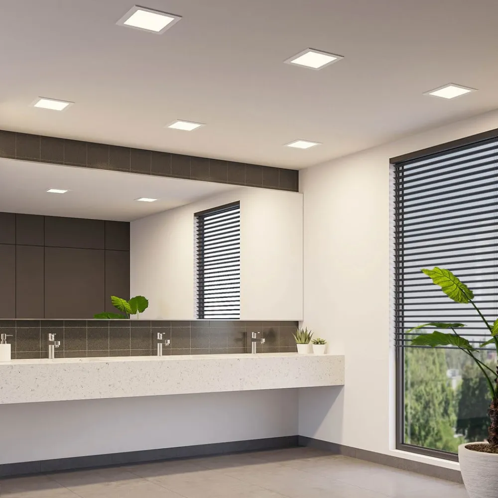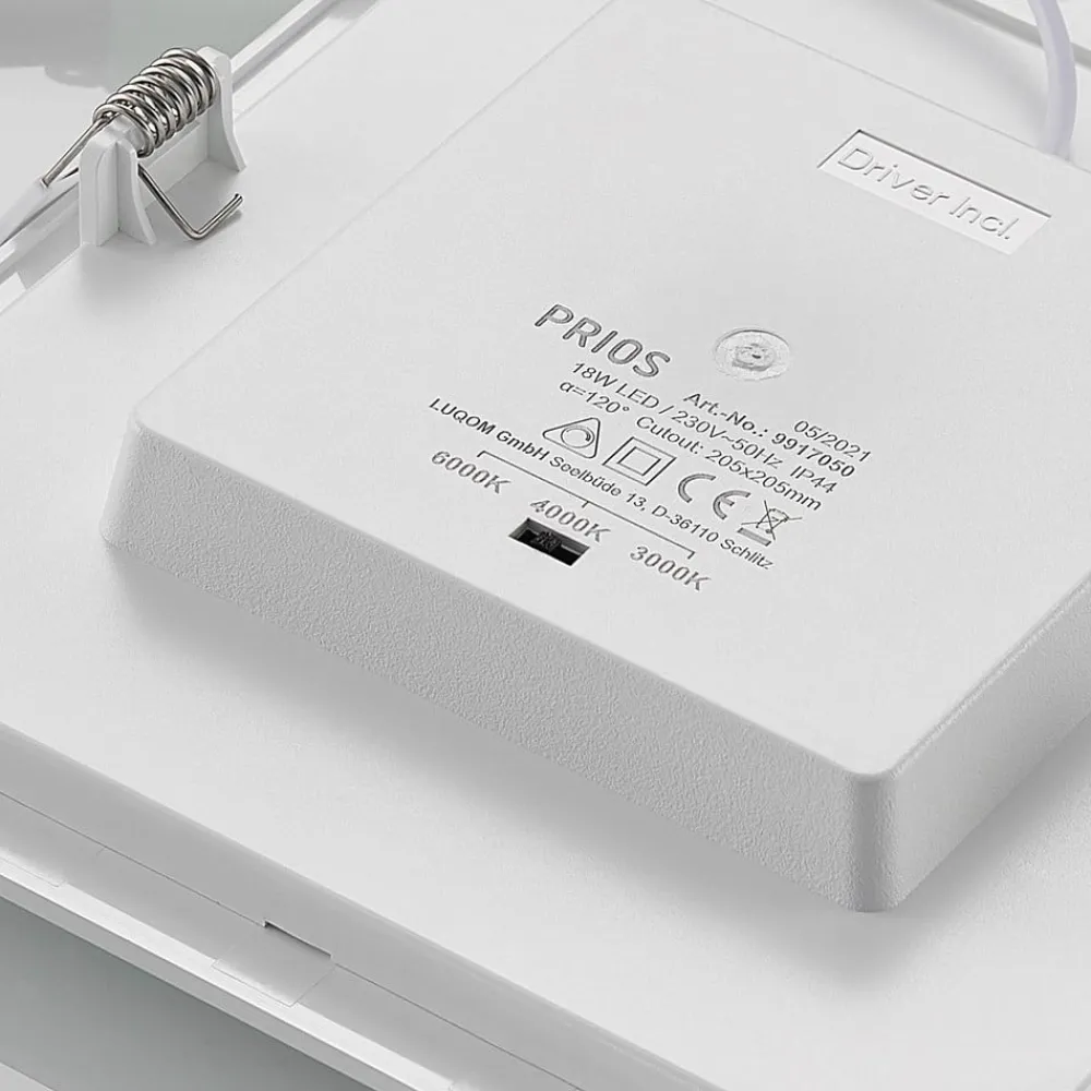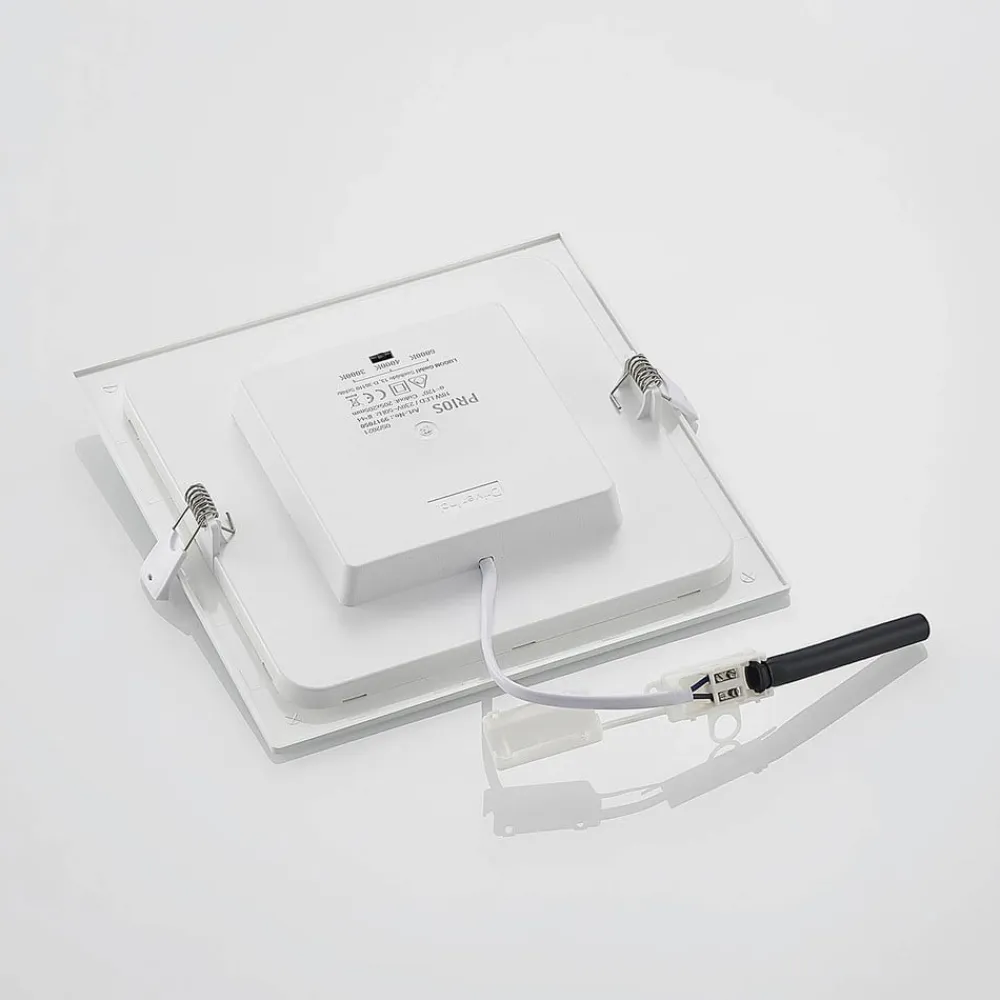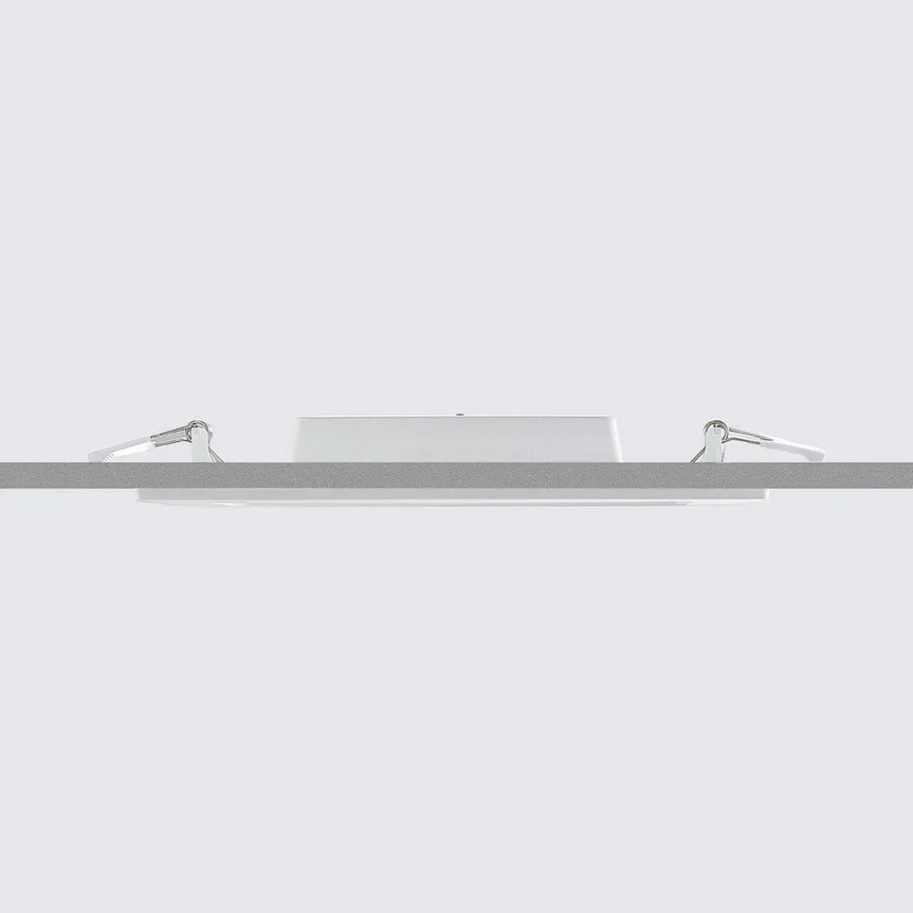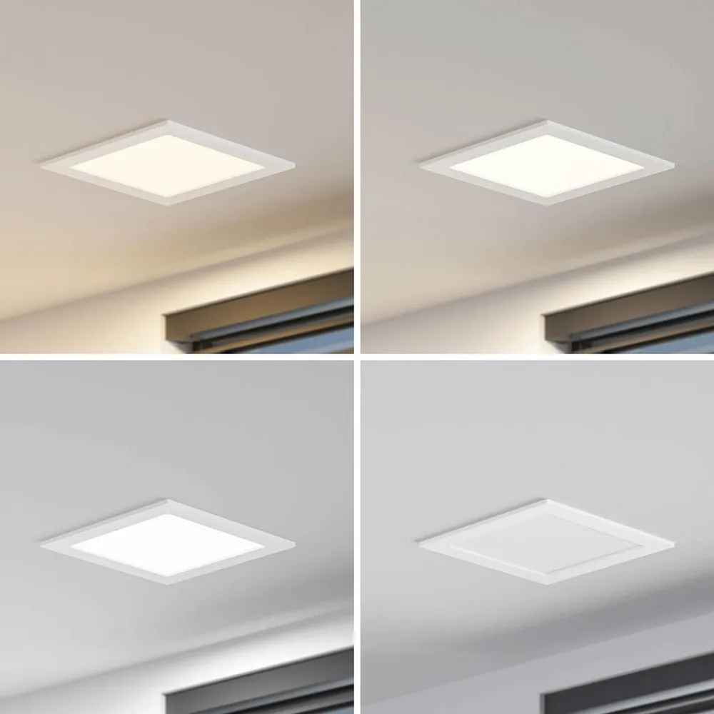 Hvid, lysstærk Helina-indbygningslampe med IP44 og DIP-kontakt til indstilling af lysfarve Helina imponerer på mange måder og er en alsidig lyskilde til både private hjem og erhvervsmiljøer. Med sin højere beskyttelsesgrad er den ideel til brug i fugtige rum som f.eks. badeværelser, og lysfarven kan indstilles på huset før installation ved hjælp af en DIP-kontakt for at få en optimal lysoplevelse. Du har også mulighed for at justere lysstyrken, hvis der findes en ekstern lysdæmper. Udseendet er enkelt og tidløst med den firkantede grundform og den hvide ramme. Den er fremstillet af robust polykarbonat og udstyret med aluminiumsclips på bagsiden – Dæmpbar – Lysfarve kan forudindstilles via DIP-kontakt – IP44, velegnet til brug i fugtige rum – Robust polykarbonathus og aluminiumsclips for nem installation