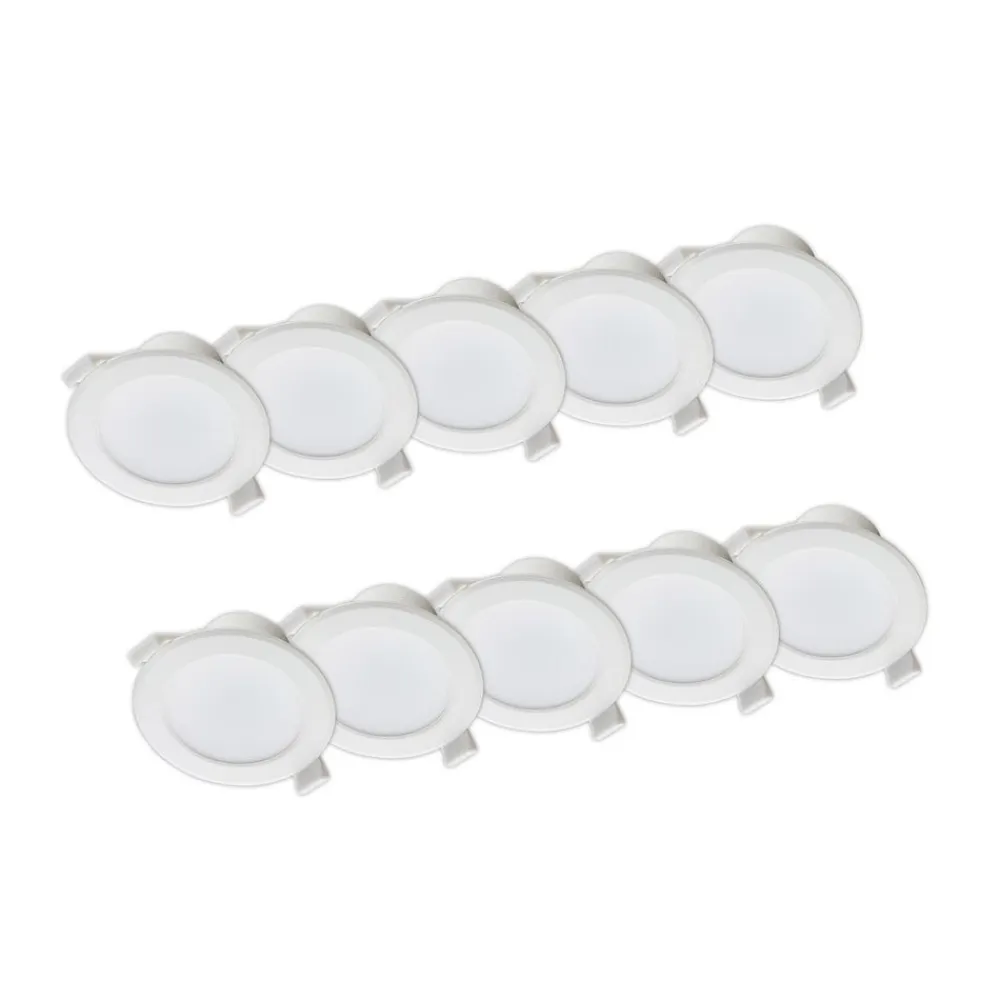 Prios LED-indbygningslampe Rida, sæt med 10, hvid, 10 cm, CCT, IP44