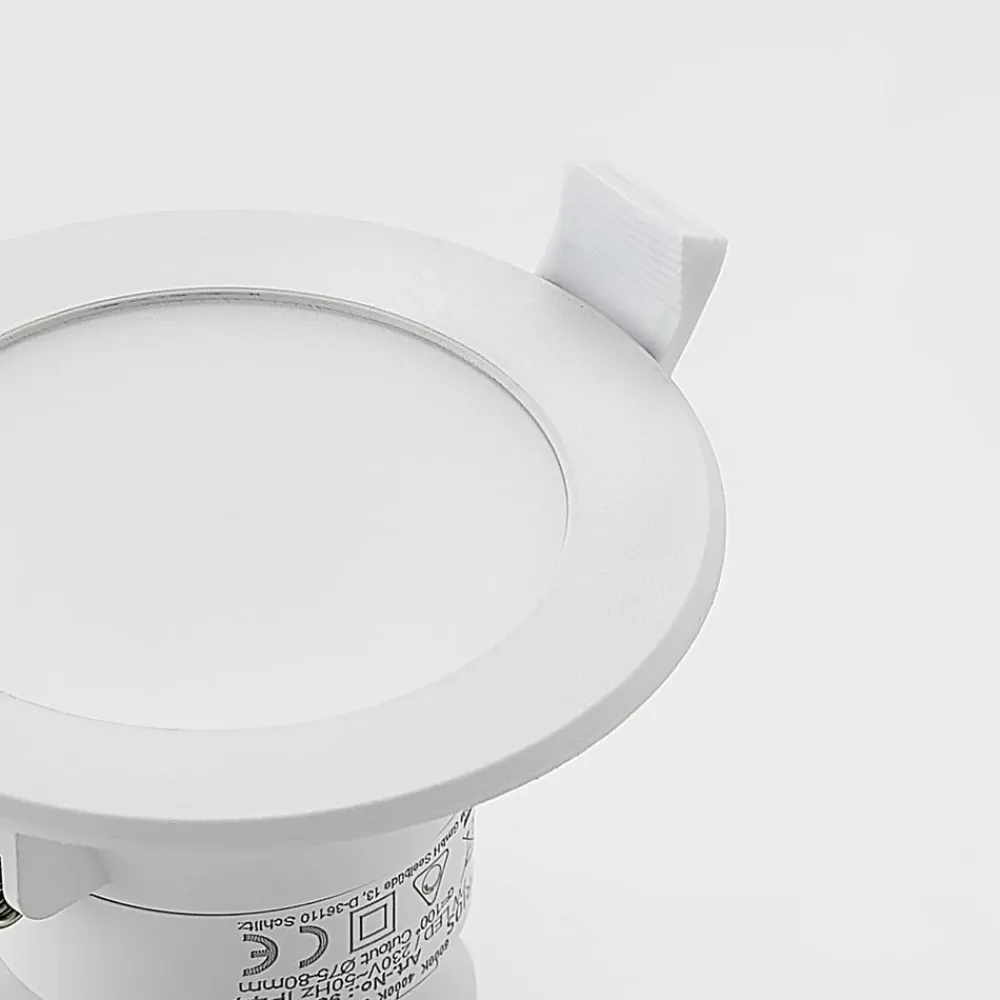 Hvid LED-indbygningsspot Rida i rund form, lysfarve kan justeres før installation via DIP-kontakt, IP44 Rida scorer med god funktionalitet og er en lyskilde til mange formål, uanset om du vil bruge LED-indbygningslampen privat eller erhvervsmæssigt. Armaturhuset er rundt og hvidt, hvilket gør det usædvanligt enkelt og tidløst, hvilket taler for dets alsidige anvendelse. Takket være den brede strålevinkel kan et rum belyses over et større område, men i større rum er det stadig tilrådeligt at bruge flere armaturer for at opnå optimale belysningsresultater. Den høje kapslingsgrad betyder, at LED-indbygningsspottet er godt beskyttet mod fugt og fugt og derfor også uden tøven kan bruges i badeværelser eller andre fugtige rum. Du skal først beslutte dig for en lysfarve under installationen, så kan du vælge en af tre farvetemperaturer via en DIP-kontakt og derefter installere armaturet. Rida kan også dæmpes eksternt, hvis en tilsvarende dæmper leveres via husinstallationen og kan bruges. Lysstyrken på de permanent installerede LED’er kan derefter justeres efter behov – Kapslingsgrad IP44 til brug i fugtige rum – Lysfarve kan indstilles via DIP-kontakt før installation – Bred strålevinkel på 100°