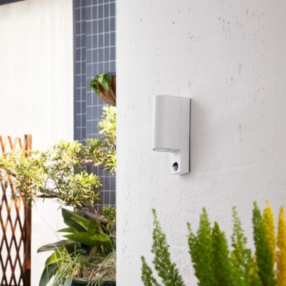 Udendørs væglampe Tetje af aluminium med bevægelsessensor – den praktiske følgesvend til udendørs brug i et praktisk sæt med 2 Tetje imponerer med sit minimalistiske design, som let kan integreres i forskellige arkitektoniske stilarter i huse. Kroppen er lavet af aluminium og har en hvid farve, som giver den en enkel karakter. Den er perfekt til udendørs brug, da den er støvtæt og beskyttet mod vandstråler takket være kapslingsgraden IP65. Den styres også af en bevægelsessensor, der er installeret på undersiden. Den udendørs væglampe Tetje kan monteres med GU10-pærer og leveres i et sæt med 2 stk.