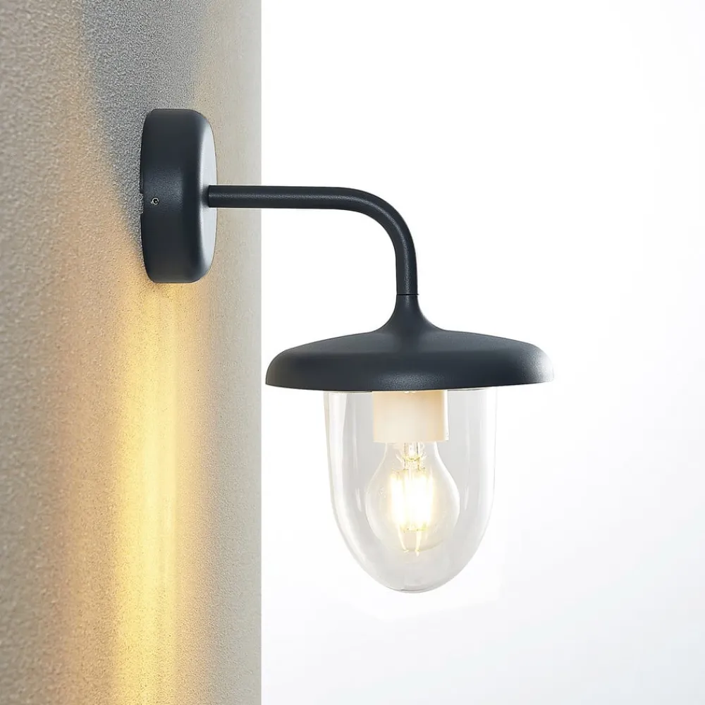 Udendørs væglampe Larkumi med en formfuldendt lampeskærm