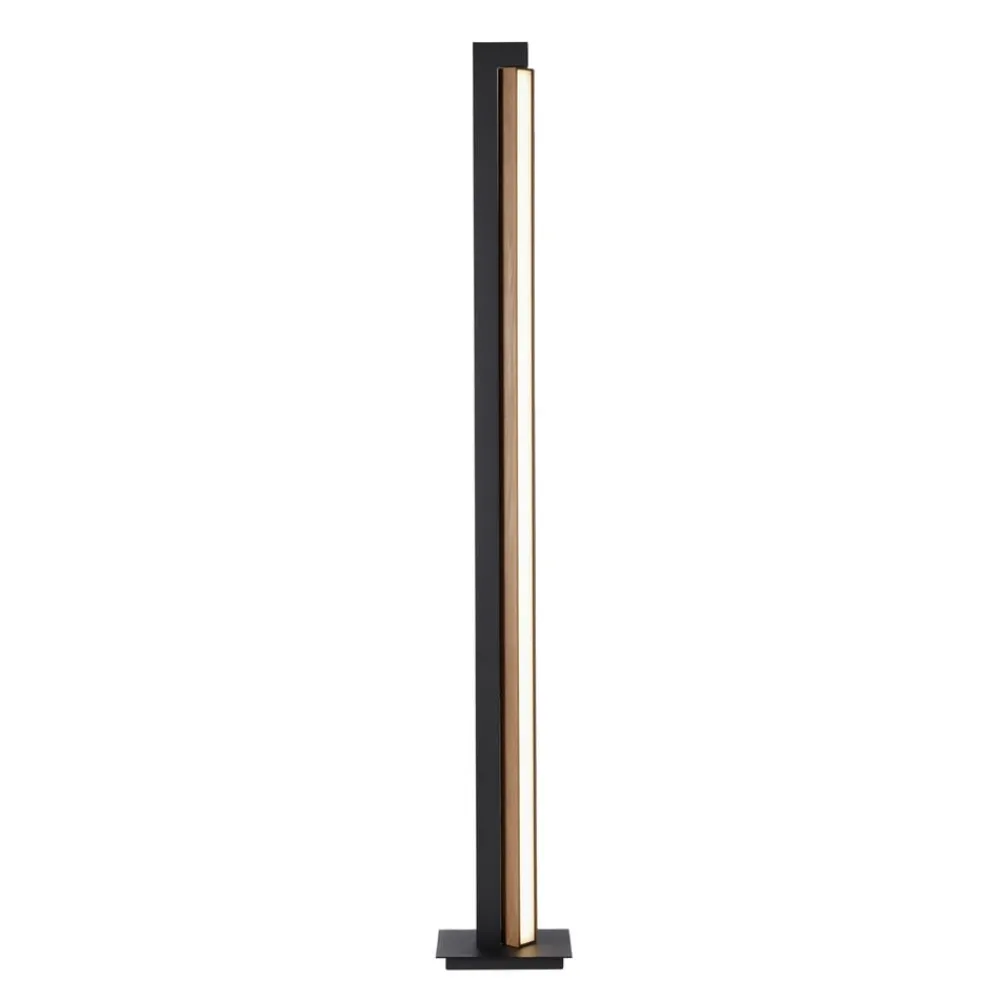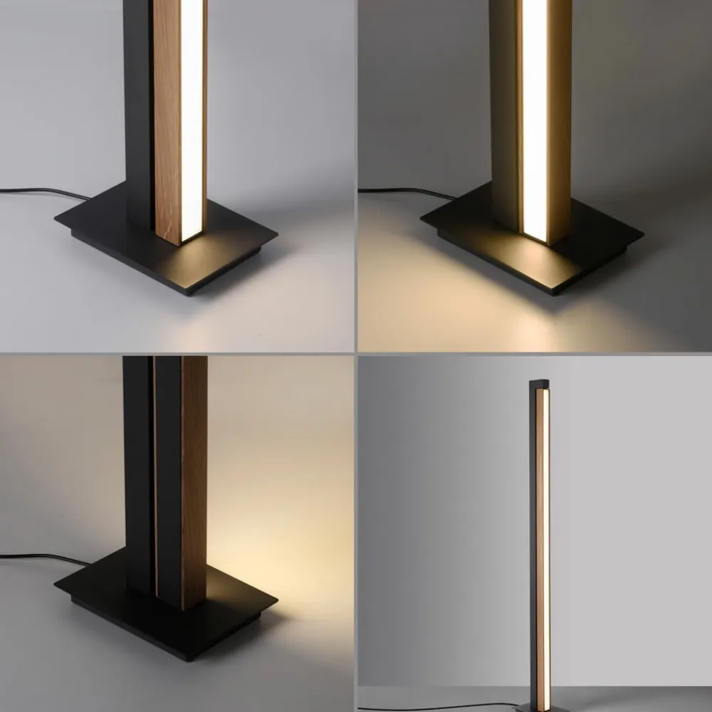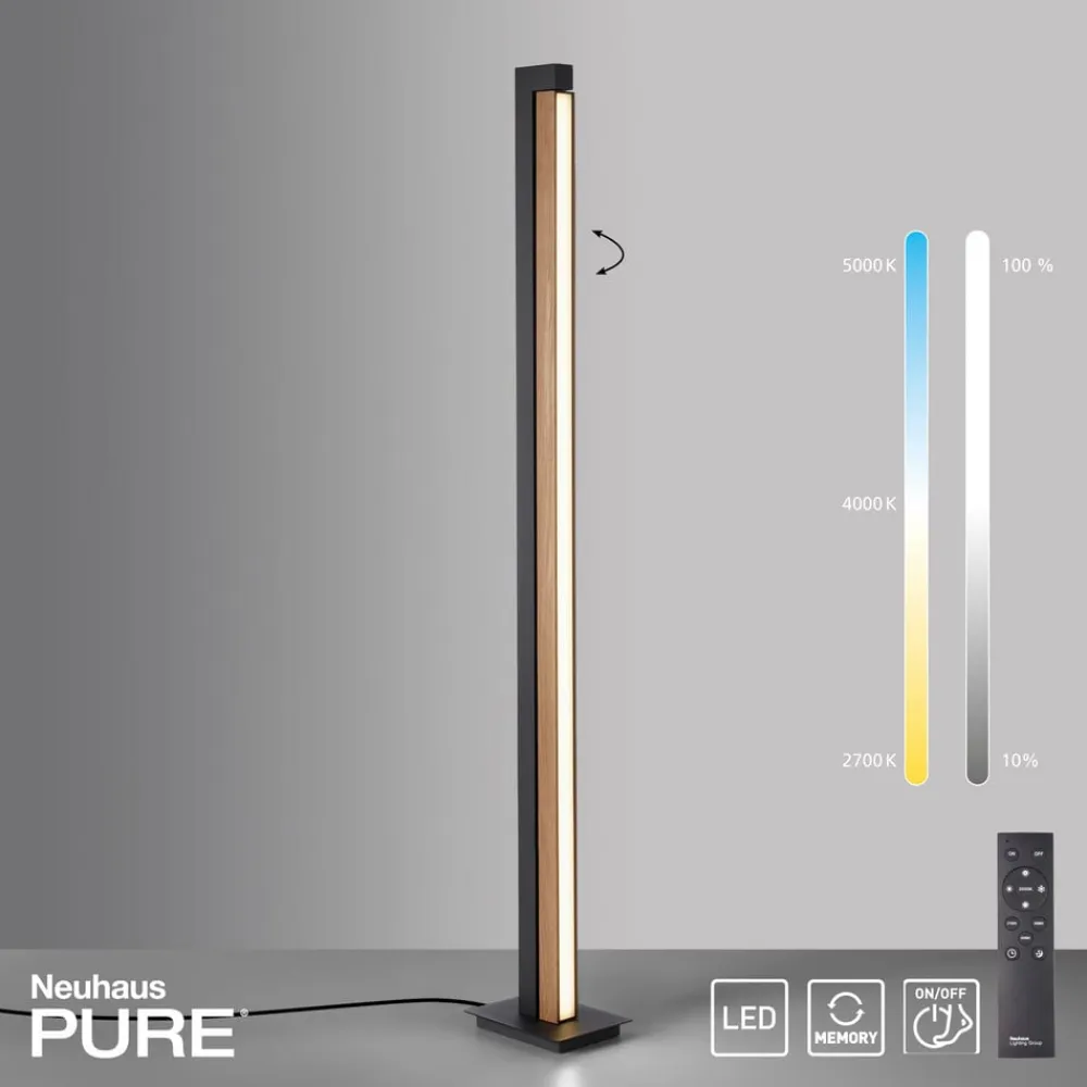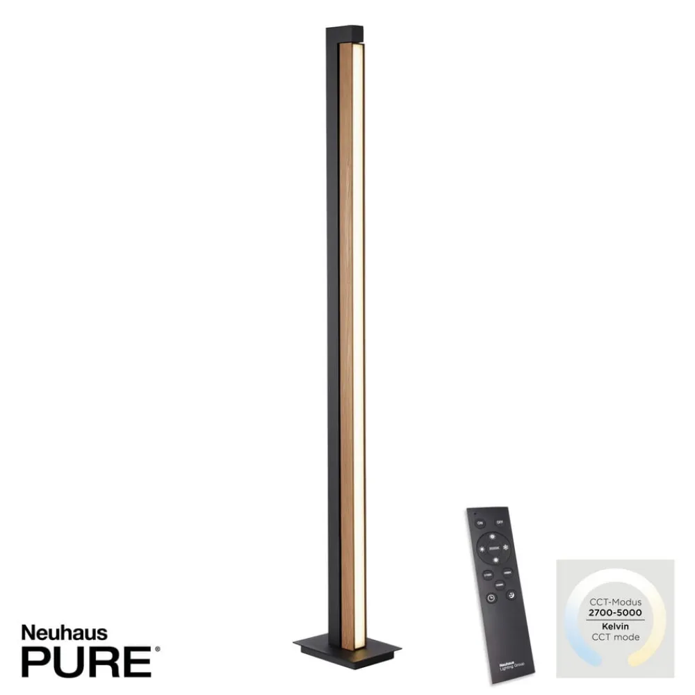 PURE LED-gulvlampe Lines, sort, træ, fjernbetjening, 140 cm