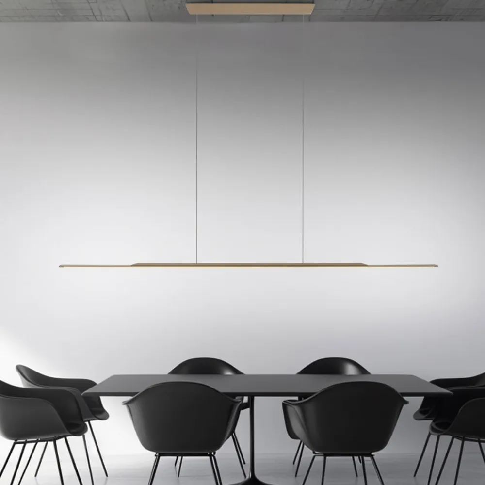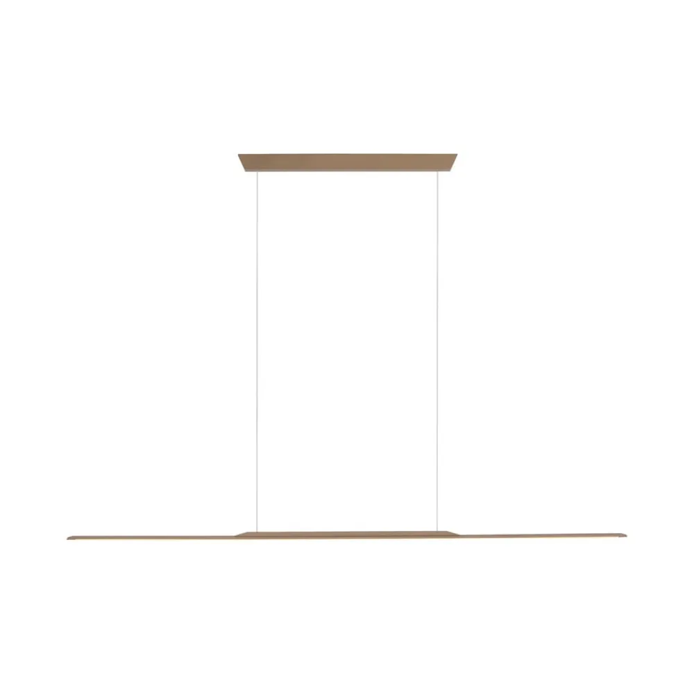Surface LED hængelampe med varmhvidt lys – eksternt dæmpbar Surface LED hængelampen er ideel til direkte bordbelysning i moderne stuer og opholdsrum. Den er designet som en pendellampe i bjælkeform med en slank, rektangulær krop af aluminium. Undersiden er udstyret med varmhvide LED’er bag en satineret akrylskærm. Deres lysstyrke kan justeres eksternt ved hjælp af en dæmper. Længden på de to ophængningskabler kan justeres før installation.