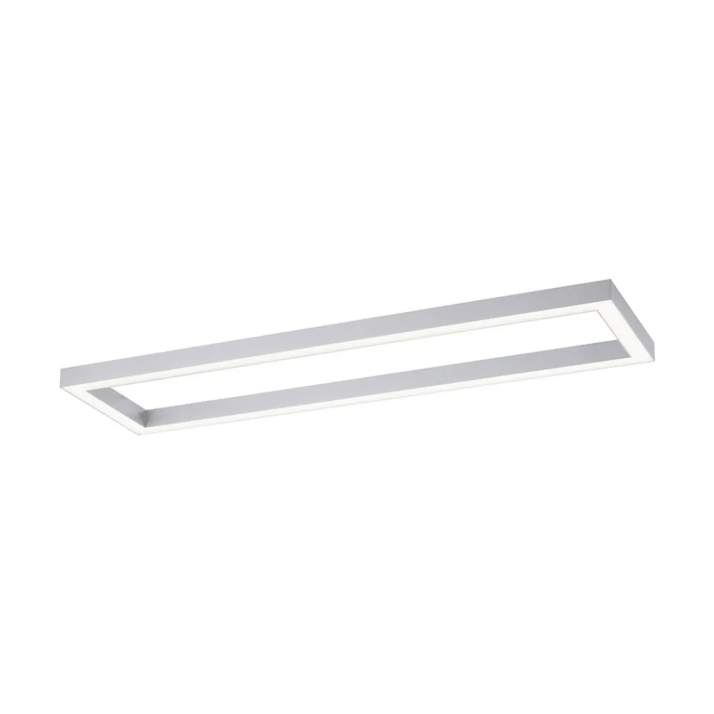 PURE LED-loftlampe Lines, 110 x 30 cm, sølv, CCT, fjernbetjening
