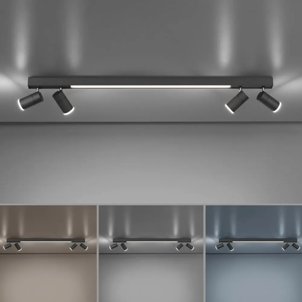 Med sit klassiske, tidløse design kan LED-loftlampe Pure Lines integreres perfekt i forskellige rum og indretningsstilarter. Det særlige ved loftlampen er deres fem lyskilder: Der er to justerbare spots i hver ende af rammen, mens der desuden er integreret en langstrakt lysudgang i midten. Med den medfølgende fjernbetjening er det muligt at variere lysfarven fra varm til universalhvid. Desuden er lampen trinløst dæmpbar. På den måde kan lysforholdene i rummet nemt tilpasses de ønskede behov. Den integrerede hukommelsesfunktion gemmer den sidst valgte lysindstilling.