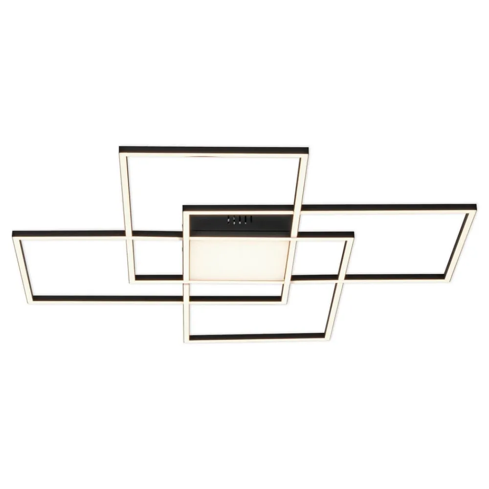 Moderne Q-ASMIN LED-loftlampe med CCT- og dæmpningsfunktionDen moderne, overlappende udformning gør Q-ASMIN LED-loftlampe til et smukt blikfang i boligen. Den består af en firkantet lyskilde i midten samt flere smalle rektangler, som også indeholder en LED-lyskilde. Den indre og ydre belysning kan skiftes separat eller sammen. Med den medfølgende fjernbetjening er det muligt at dæmpe armaturet og ændre lysfarven trinløst fra varm hvid til universalhvid. Desuden kan der vælges forskellige lysscenarier. Hukommelsesfunktionen gemmer den valgte indstilling indtil næste gang, den tændes. Eventuelt kan loftslampen også styres med en passende app. Hertil er det nødvendigt at integrere den i et kompatibelt ZigBee-kompatibelt smart home-system.Tekniske data/kompatibilitet:- Dæmpbar- Lystemperatur justerbar fra varm hvid til universal hvid- Hukommelsesfunktion- Skift af op til 20 individuelle Q-lys eller Q-lys til max. 3 grupper med kun én Q-fjernbetjening- ZigBee-kompatibel- Styrbar med fjernbetjeningen- Stemmestyring via Echo (4. Når den integreres i et ZigBee-baseret smart home-system, kan den også styres via app eller stemmestyring.Bemærk: Der kræves en bro til integration i et smart home-system eller app-styring; dette er ikke en del af leveringsomfanget