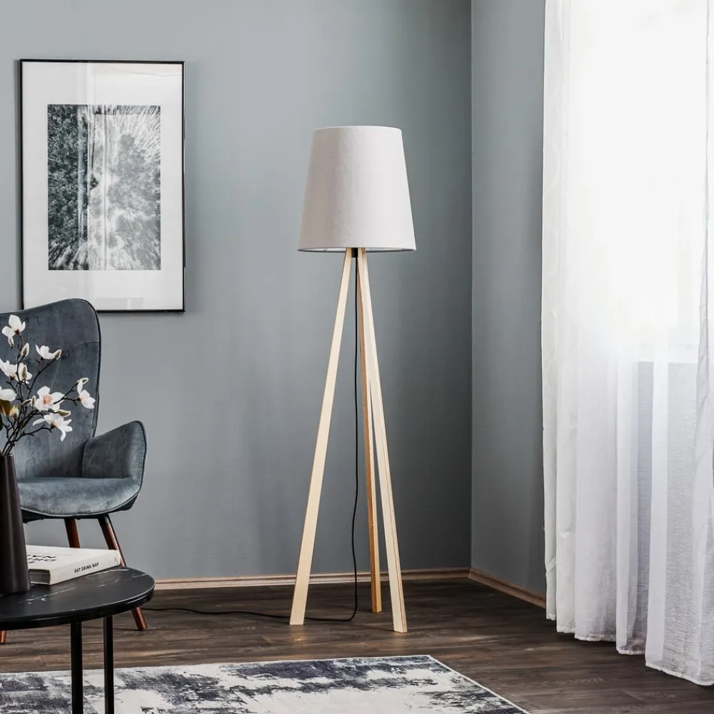 Quitani Gulvlamper|Gulvlamper>trebenet gulvlampe Jata, træ, filt, grå