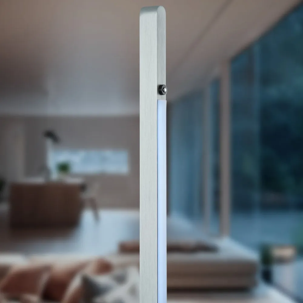 Talon-belysningskoncept: LED-stående armatur med CCT-funktion til individuelle lysstemninger Talon LED-stående armatur i natureloxeret aluminium er en innovativ belysningsløsning, der skaber nye stemninger i rummet. Med den kontrollerbare lysfarve (CCT) kan lysfarven justeres efter behov for at skabe den ønskede atmosfære i arbejds- eller opholdsrum. Den integrerede LED-lyskilde kombinerer energieffektivitet med langtidsholdbar kvalitet og giver et moderne lysdesign. Lysdæmperen, der er inkluderet i leveringsomfanget, gør det muligt at finjustere lysstyrken for at skabe både inspirerende og beroligende lysforhold. Gulvlampen Talon er et udtryk for moderne interiørdesign.