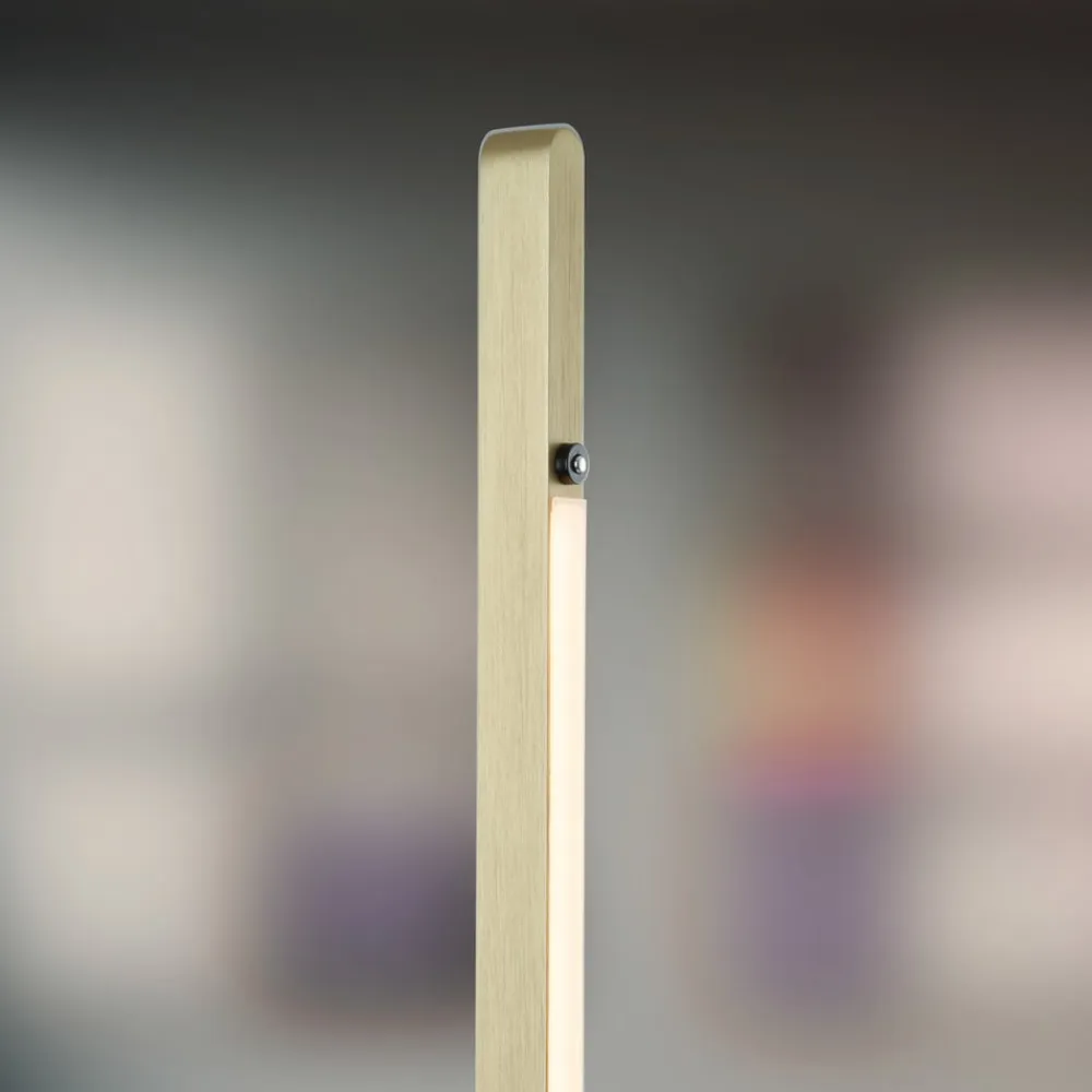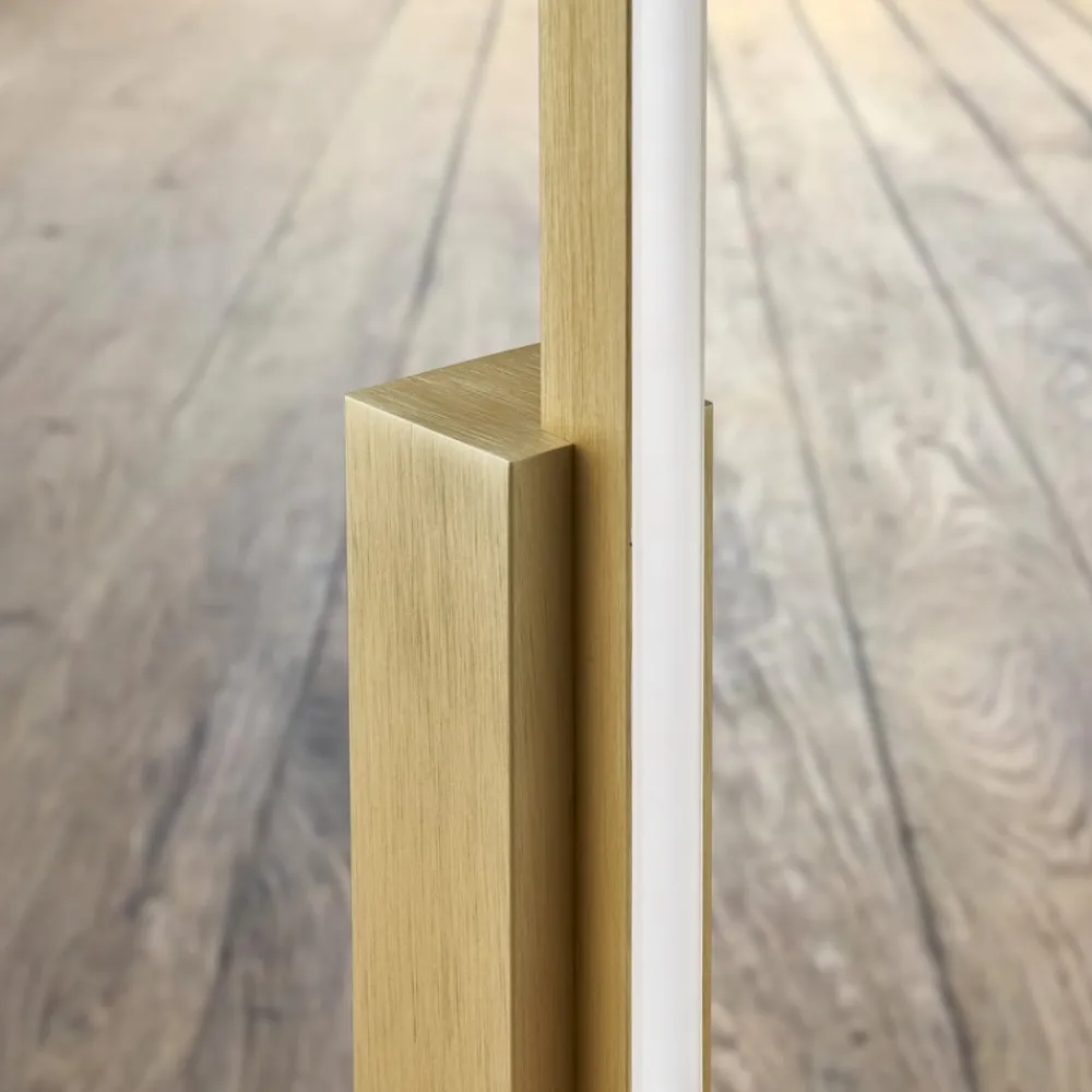 Talon LED-gulvlampe: elegance møder CCT-funktion Talon LED-gulvlampen i anodiseret mat messing er en stilfuld tilføjelse til ethvert arbejdsværelse eller stue. Med den kontrollerbare lysfarve (CCT) kan lysfarven justeres individuelt for at skabe en inspirerende eller beroligende atmosfære efter behov. Den moderne gulvlampe har en integreret LED-lyskilde, som ikke kun giver en ensartet belysning, men også er energieffektiv. Dæmpningsfunktionen giver yderligere fleksibilitet til at justere lysstyrken efter behov og skabe den perfekte atmosfære.
