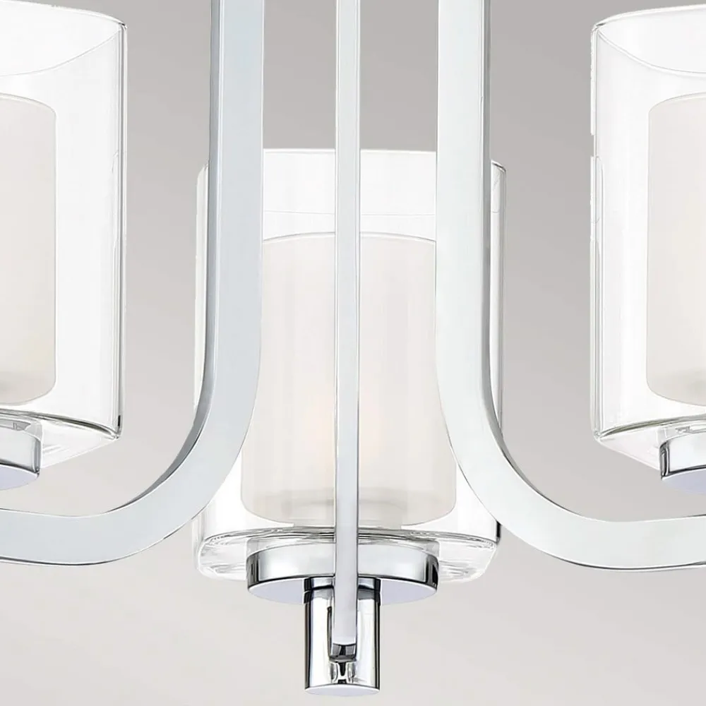 Kolt loftlampe med IP44-beskyttelse, tre lamper Kolt loftlampe med tre lamper imponerer med et enkelt design i stål og glas med en elegant, poleret kromfinish. Armaturet er udstyret med tre dobbeltlagede glasskærme, der sidder lodret på de buede arme. De indre, mindre skærme er lavet af sandblæst glas og sikrer blændfri lysudsendelse, mens de større ydre skærme, som omgiver de små skærme, er lavet af klart glas, hvilket skaber et sofistikeret look og en særlig lyseffekt. IP44-beskyttelse gør armaturet til den perfekte loftslampe til badeværelset.