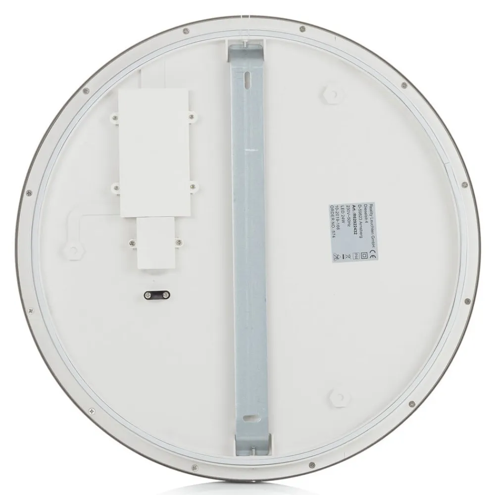 LED-loftlampe Camillus med den sorte ramme kan også monteres på væggen. Lyset kan dæmpes i tre forskellige lysstyrkeniveauer ved hjælp af den normale lyskontakt. Takket være IP44- kapslingsklasse er Camillus LED-loftlampe også velegnet til badeværelset. Det varme hvide lys oplyser rummet jævnt.