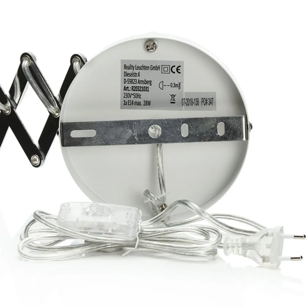 Vær den første til at anmelde “Reality Leuchten Sakse-væglampe, hvid, metal, stik, harmonika” Annuller svar