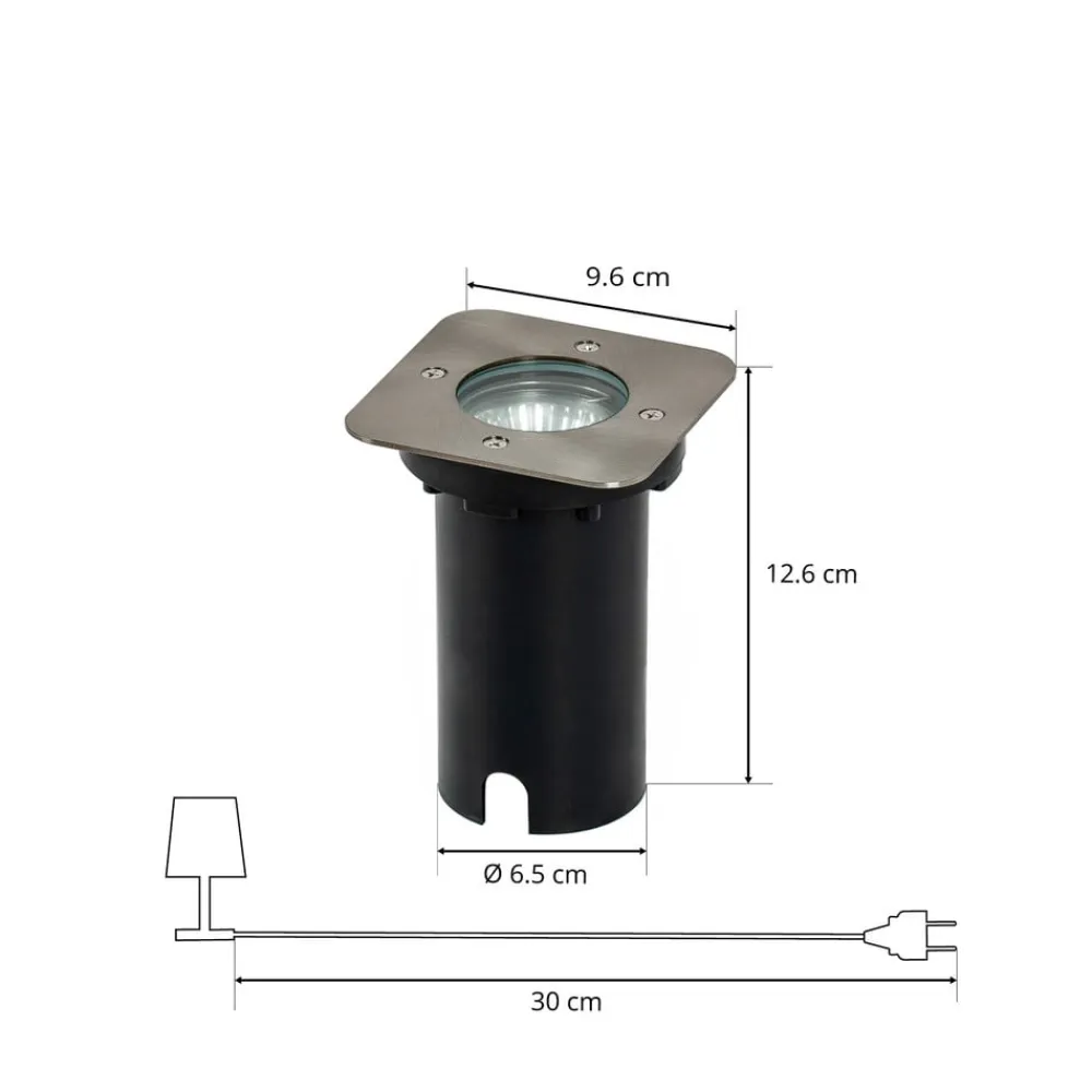 Indbygningslampen Riya er perfekt til belysning af udendørsarealer. Indbygningslampen har et kantet design i stål, der præsenterer sig i den typiske grå farve. Kapslingsgraden IP67 gør lampen støvtæt og beskytter den mod midlertidig nedsænkning. Dette gør den til den perfekte ledsager, når det drejer sig om skiftende vejrforhold foran hoveddøren. Desuden tåler indbygningslampen Riya en overfladetemperatur på maks. 70 °C. Lampen kan ikke køres over og er derfor mindre velegnet til belysning af en indkørsel, men til gengæld er den den perfekte ledsager til terrassen.