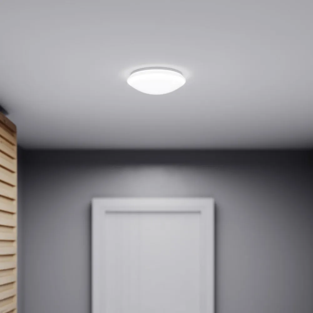 Enkel montering (1 tilslutning), tilslutningsmulighed for ekstra forbruger, f.eks. badeværelsesventilator, udskiftning af lampe uden værktøj takket være skrueløs glasmontering med bajonetlås.