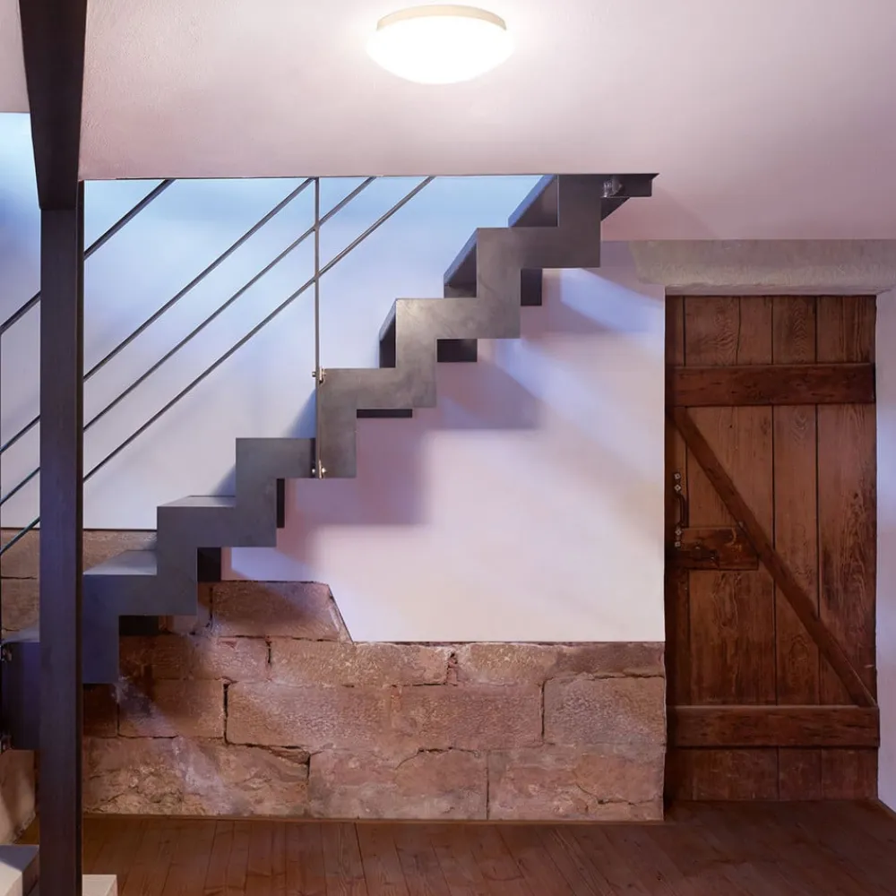 Væg- eller loftslampe i businesslike design med bevægelsesdetektor – ideel til gang, entré eller trappeopgang. Udførelse af høj kvalitet – tysk kvalitet.