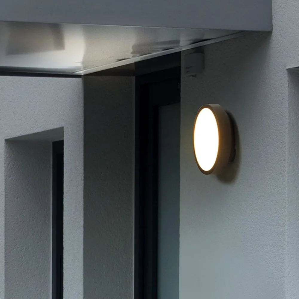 Designet i en flad, rund form og med en diskret finish harmonerer HB 108 LED udendørs vægarmaturet med ethvert moderne miljø. Det giver et homogent, bredt lys i en varm hvid tone. Afskærmningen fylder næsten hele fronten af det udendørs vægarmatur; det støbte aluminiumskorpus med pulverlakering i antracit metallic er kun synligt som en smal, ringformet ramme.