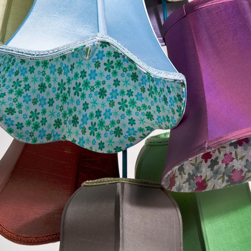 Farverig SALOON FLOWER hængelampe med ni skærme i forskellige farver Du kunne måske fristes til at tro, at det er farverige nederdele, der hvirvler rundt her. Du tager måske ikke fejl, for hængelampen hedder bestemt ikke SALOON FLOWER ved en tilfældighed. Uanset om du tænker på 1920’ernes saloon eller føler dig mindet om saloonen i det vilde vesten, så dansede man og nød det farverige liv i begge dele. Indersiden af de klassisk designede skærme, hvoraf nogle er dekoreret med blomstermønstre, er særligt attraktive.