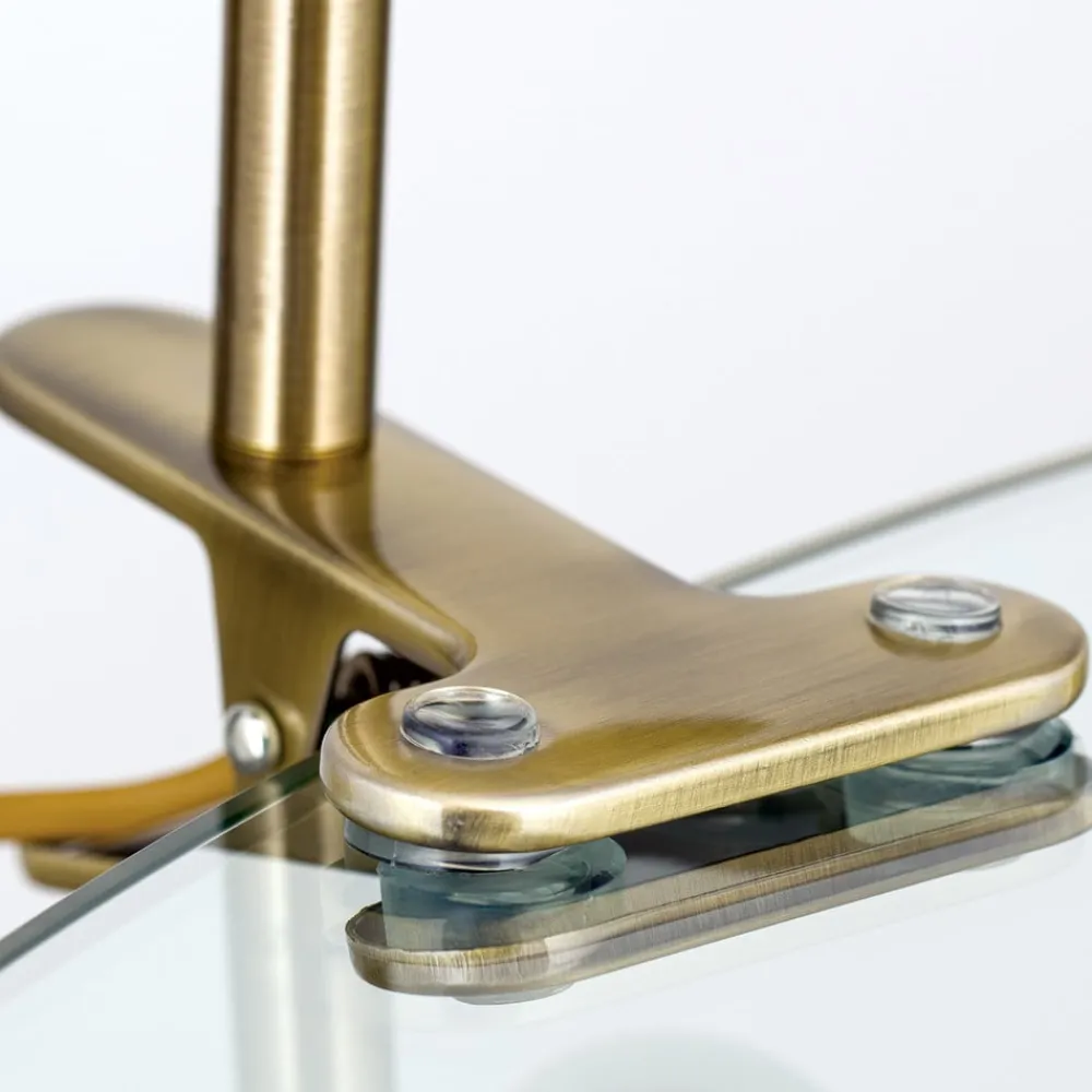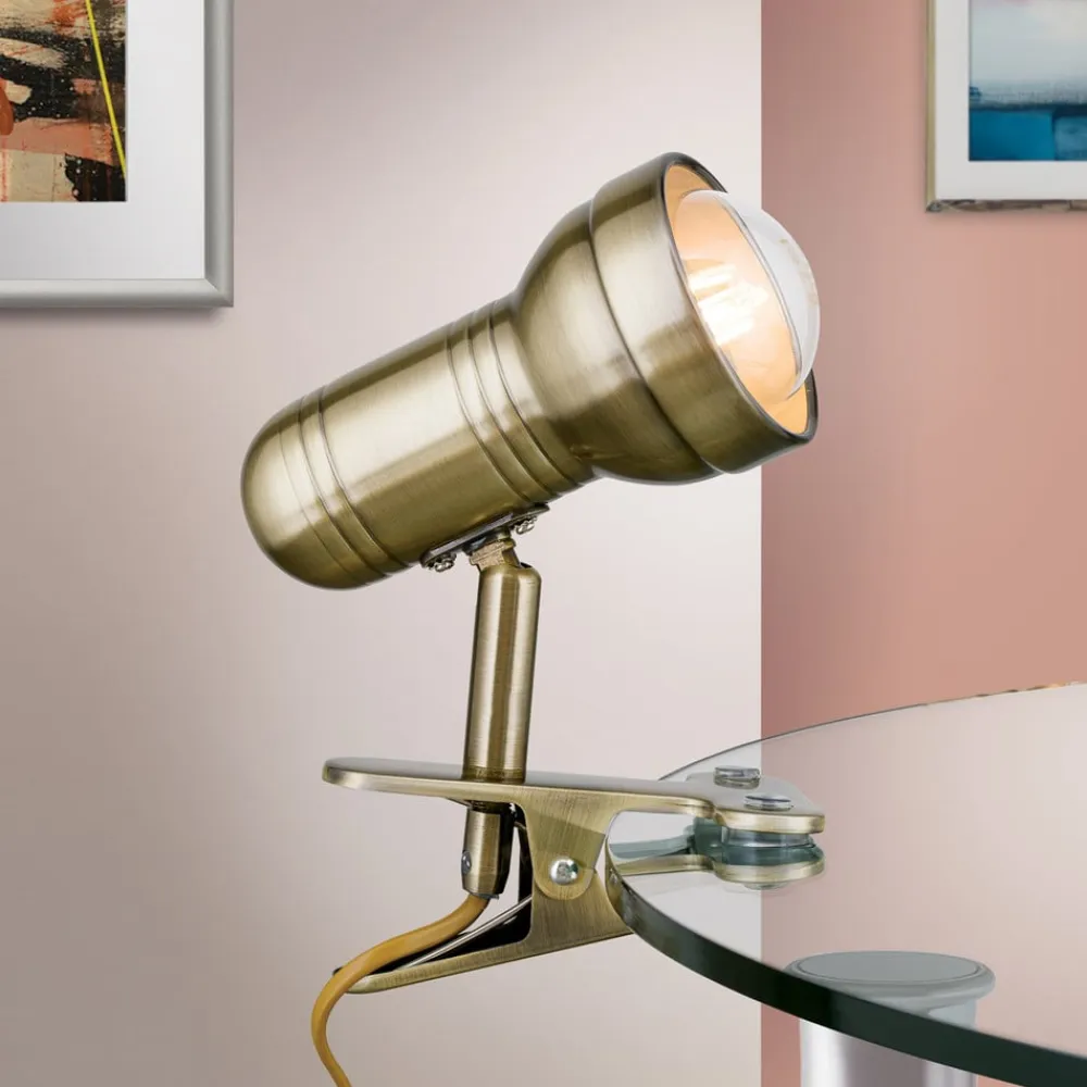 Cool Samal klemlampe fås i mat messing, satin og patina. Lampen er udstyret med en metalklemme og et kugleled og kan placeres de mest forskelligartede steder.