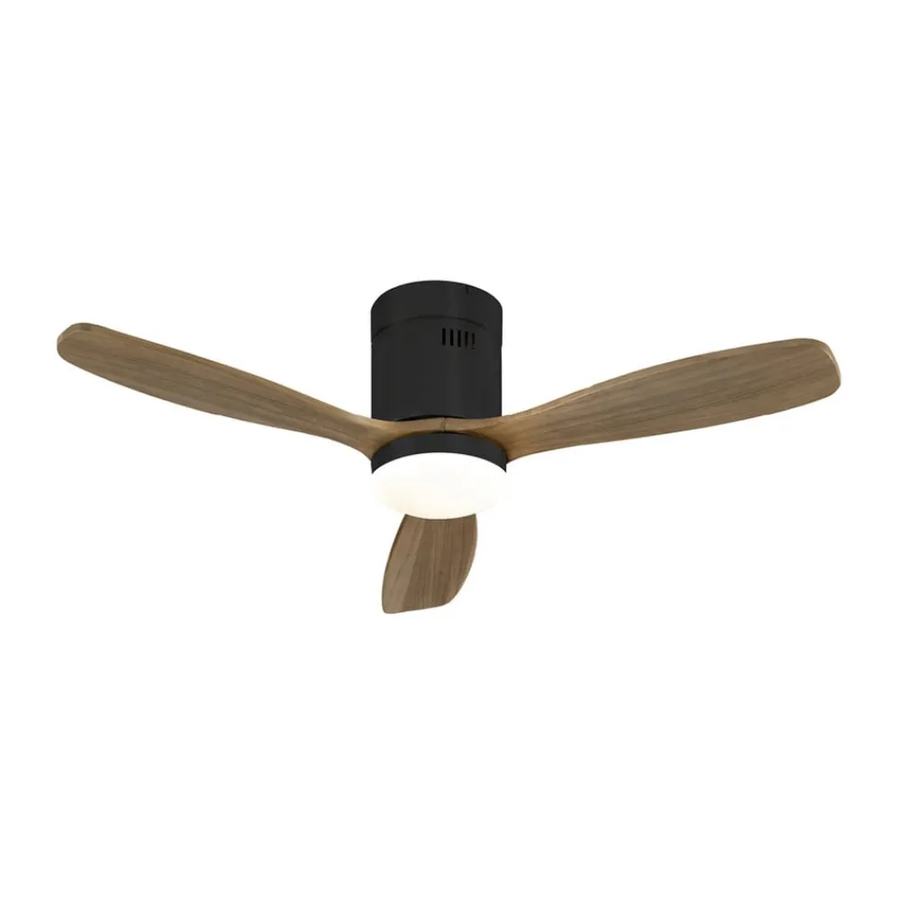 LED loftventilator Siroco Mini, DC, støjsvag, sort/valnød