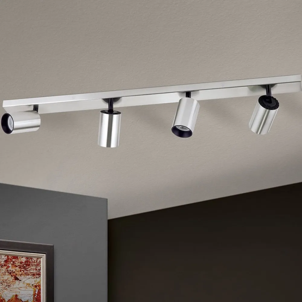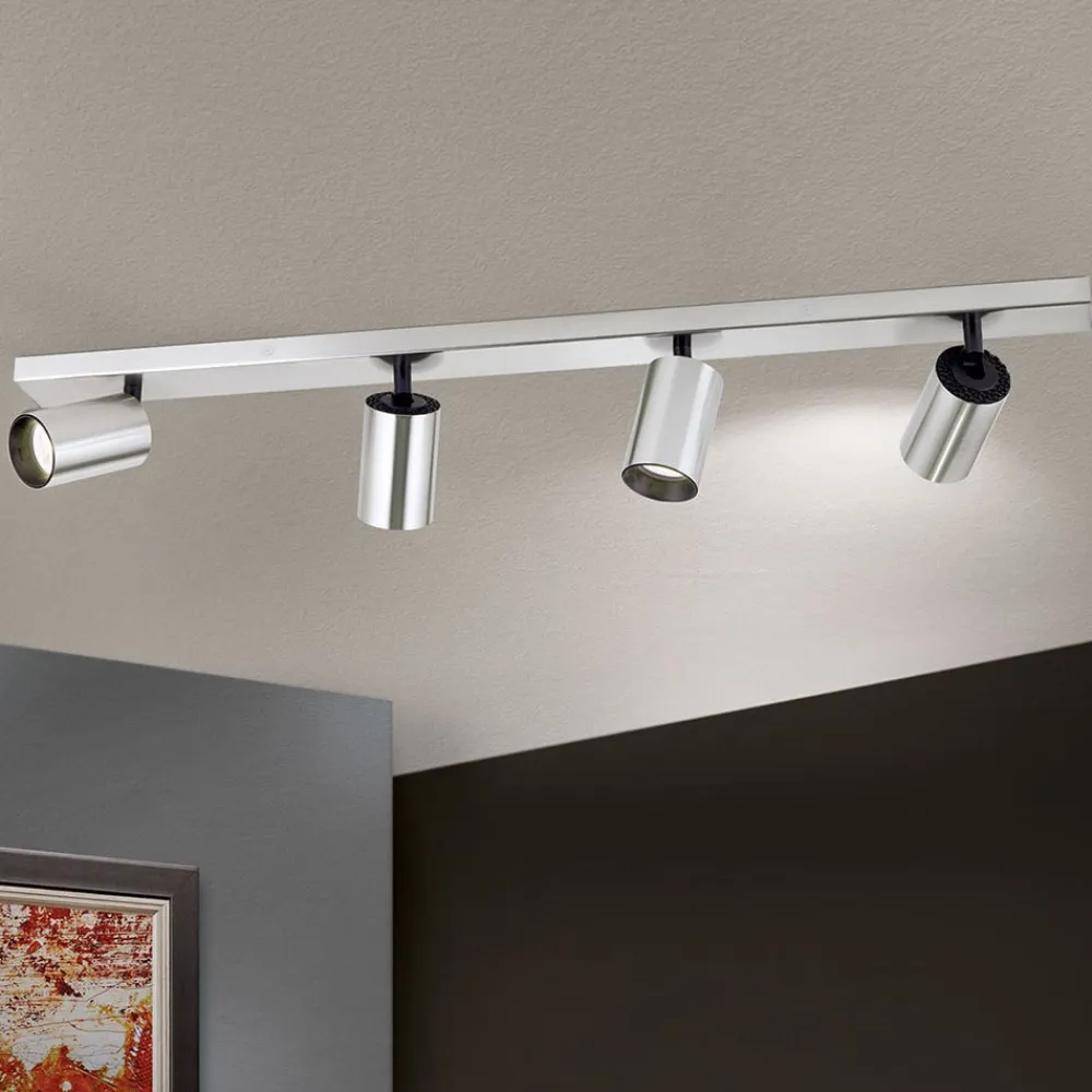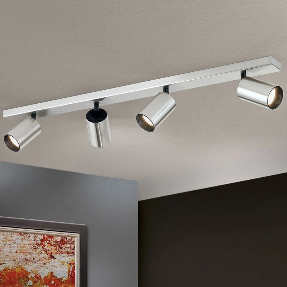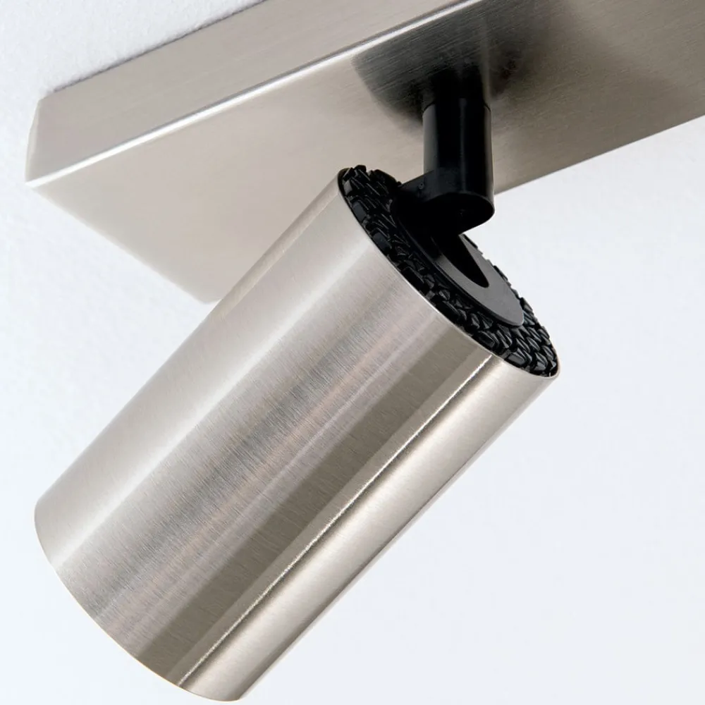 Uanset om den er monteret på loftet eller på væggen: Sean med fire bevægelige spots – hver spot kan drejes 355° – er en alsidig belysningsløsning til moderne opholdsrum. Spottet kan drejes og åbner op for mange muligheder for belysning af omgivelser og accentuering. Den nikkelfarvede finish harmonerer med utallige variationer og farver i stuen og indretningen.