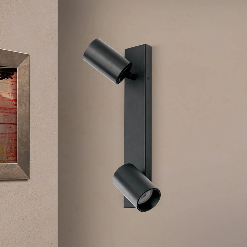 Med det subtile og moderne spotlight Sean kan områder eller genstande sættes i scene på sofistikeret vis. Da de to spots kan drejes og drejes, kan de tændes direkte og målrettet uden at forårsage blænding, fordi GU10-pærerne let forsvinder ind i armaturhuset. Spottene har en afrundet form og harmonerer med det aflange loft- eller vægarmatur, der ligesom spotlights også er designet i en mat sort farve.