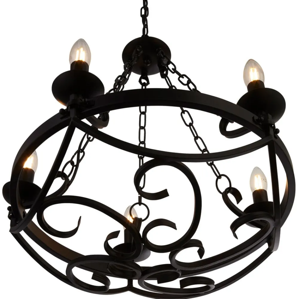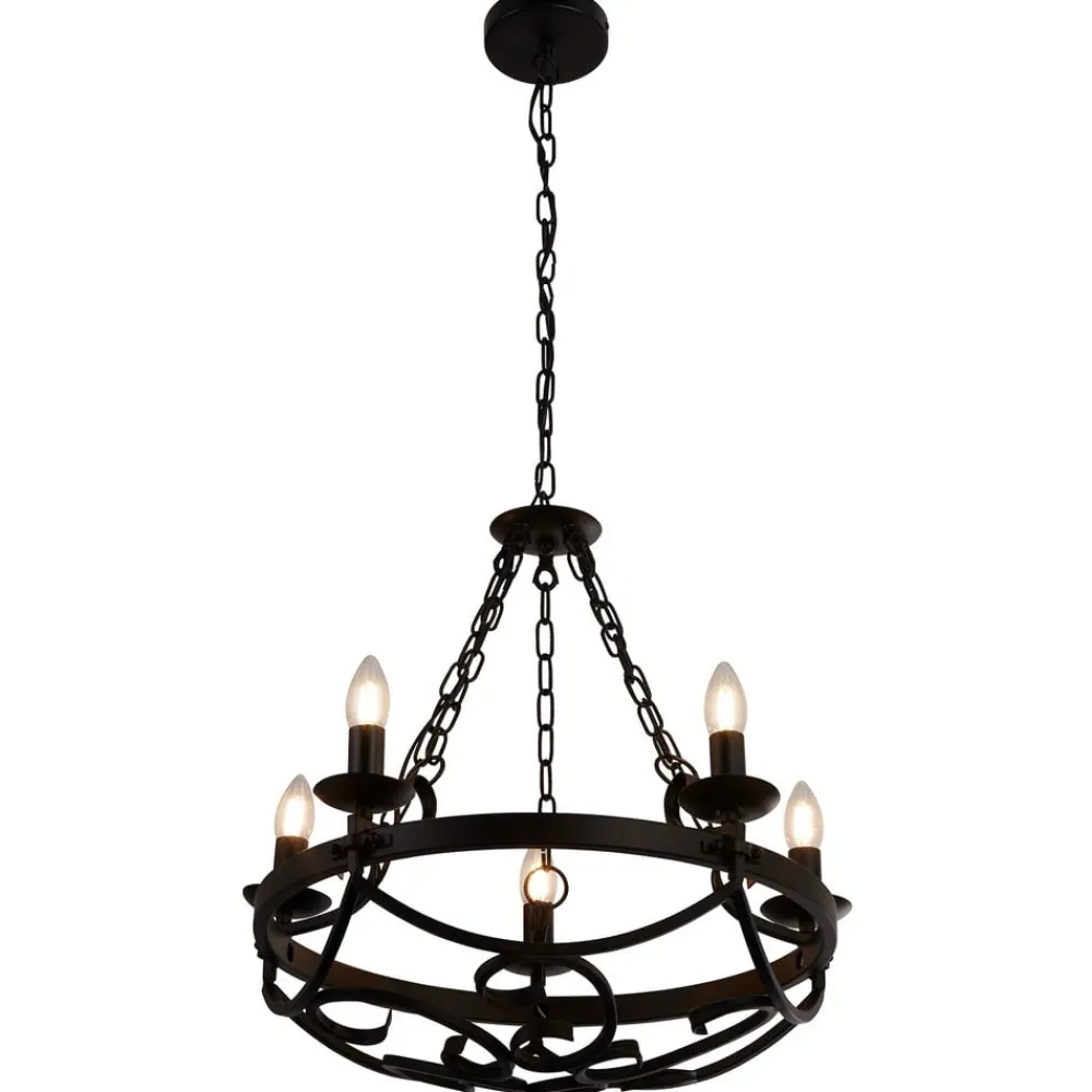 Searchlight Cartwheel III lysekrone, 5 lyskilder, Ø 54 cm, sort, metal