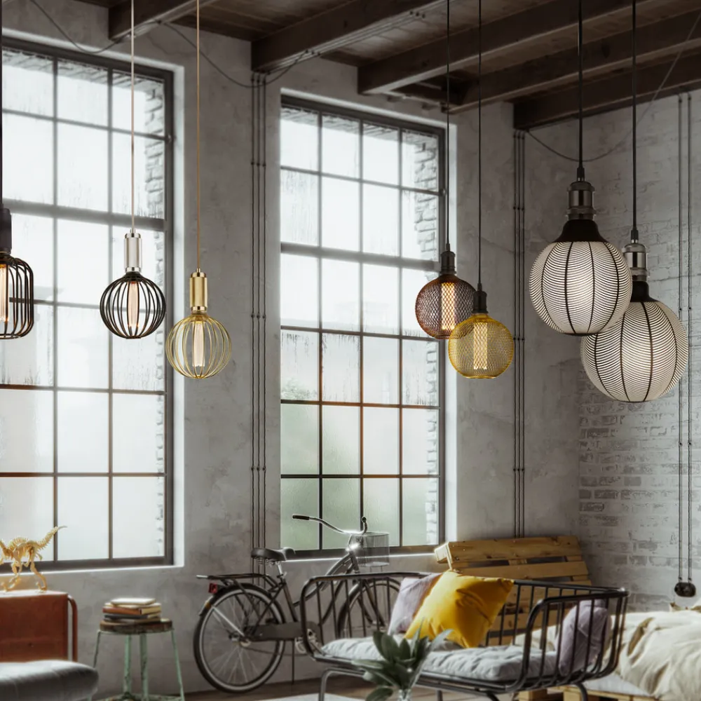 Drum filament LED-lyskilde med E27-fatning, 3,5 W, 1.800 Kelvin, dæmpbar Drum LED-lyskilden til E27-fatninger har et guldmalet stålbur. De indvendige glødetråde er omgivet af glas. Drum udsender varmt hvidt lys og kan dæmpes eksternt.